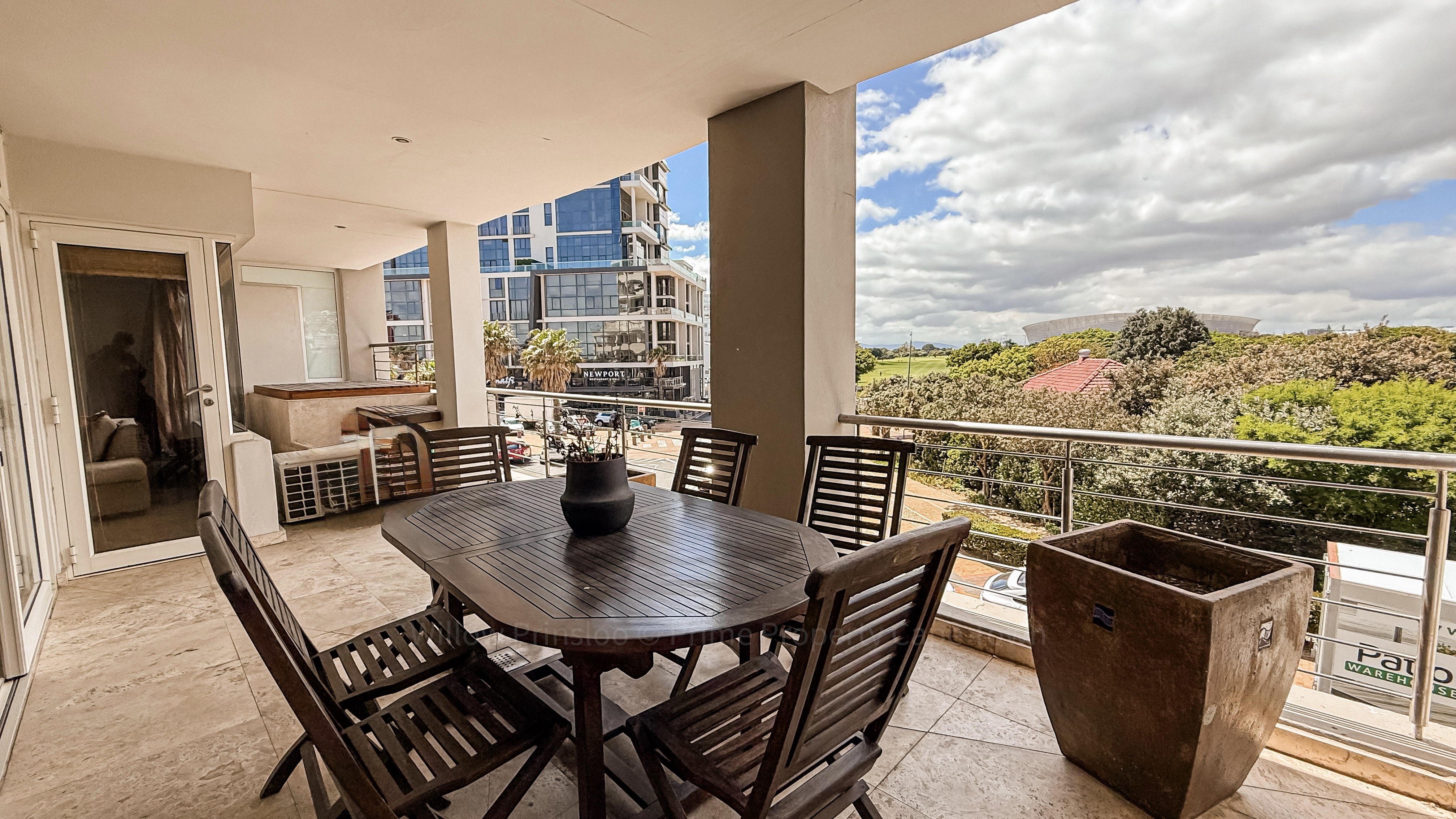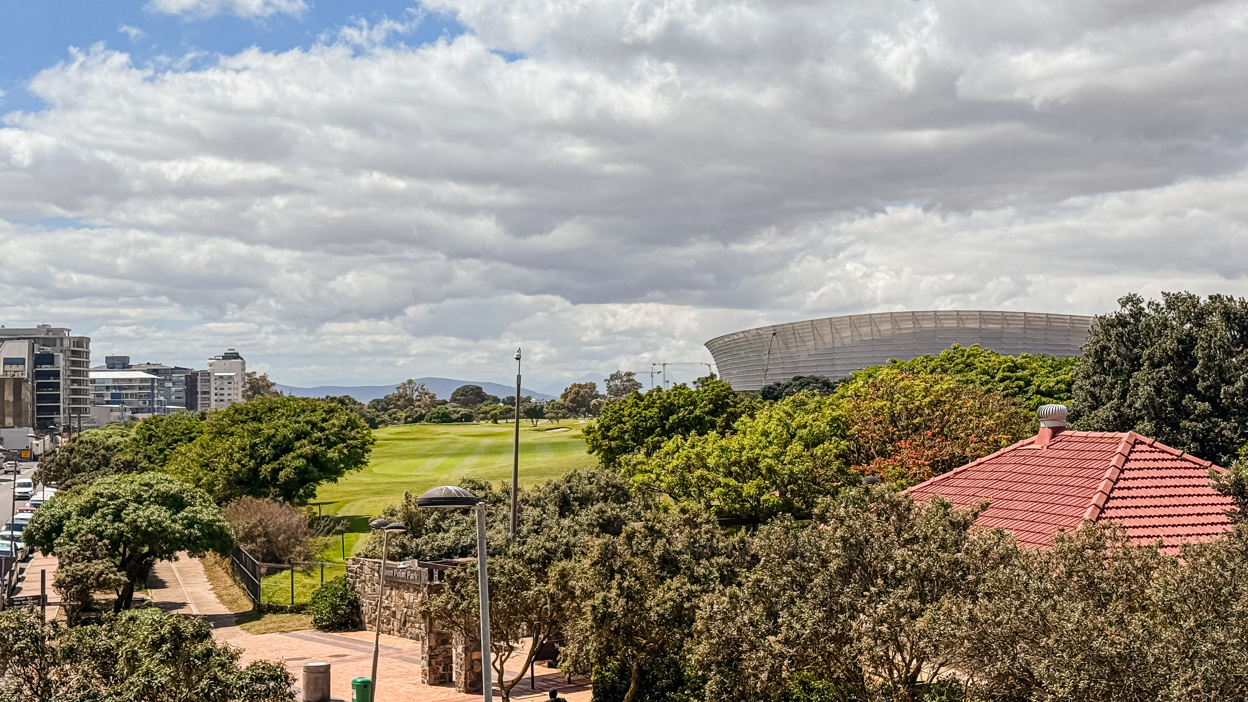 Apartments in this building are tightly held, and it’s easy to see why. Perfectly positioned along Mouille Point’s sought-after promenade, this two-bedroom, two-bathroom apartment captures some of the most dynamic views in Cape Town — the lush Green Point Golf Course below, the city skyline in the distance, and Signal Hill rising proudly behind it all, with the stadium as a striking centrepiece.