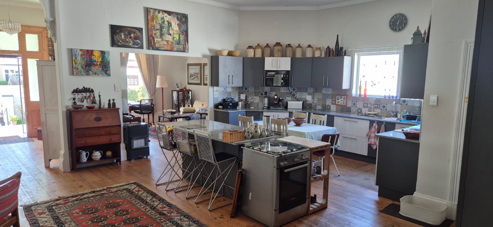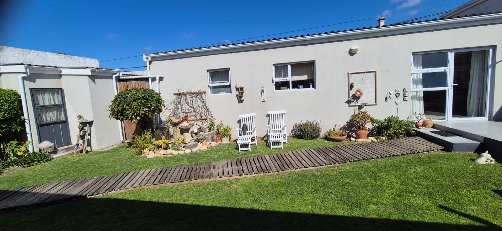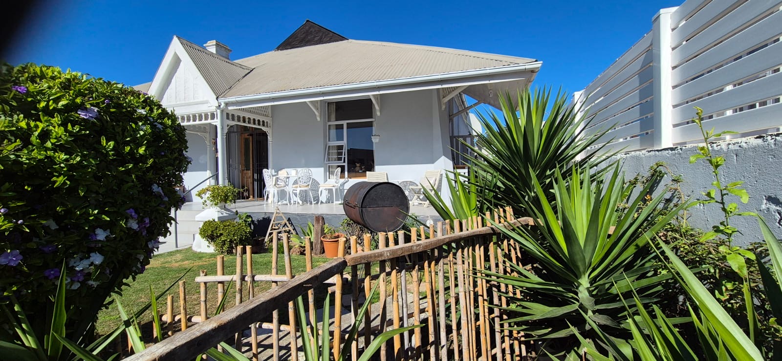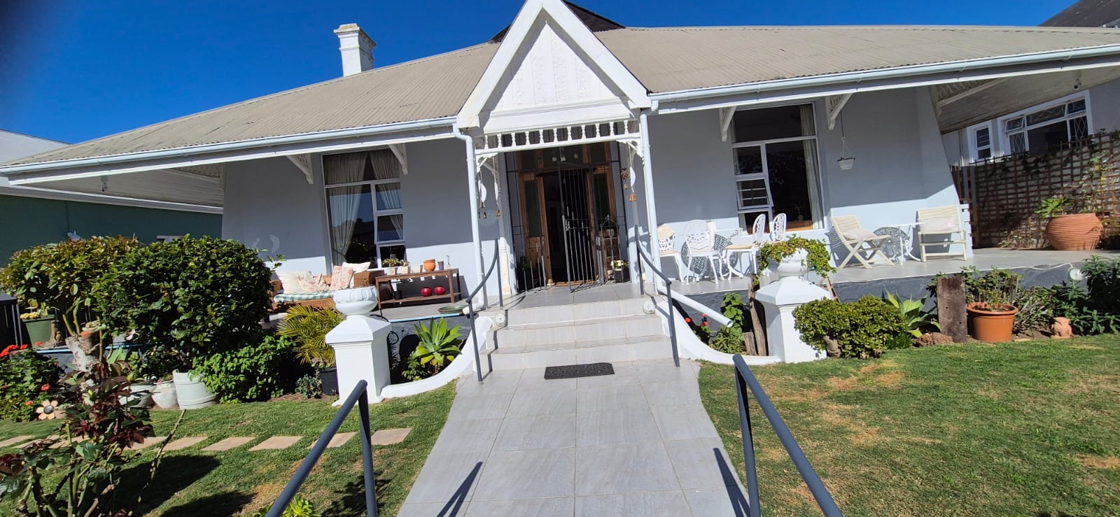 Sunny covered farmhouse styled stoep.