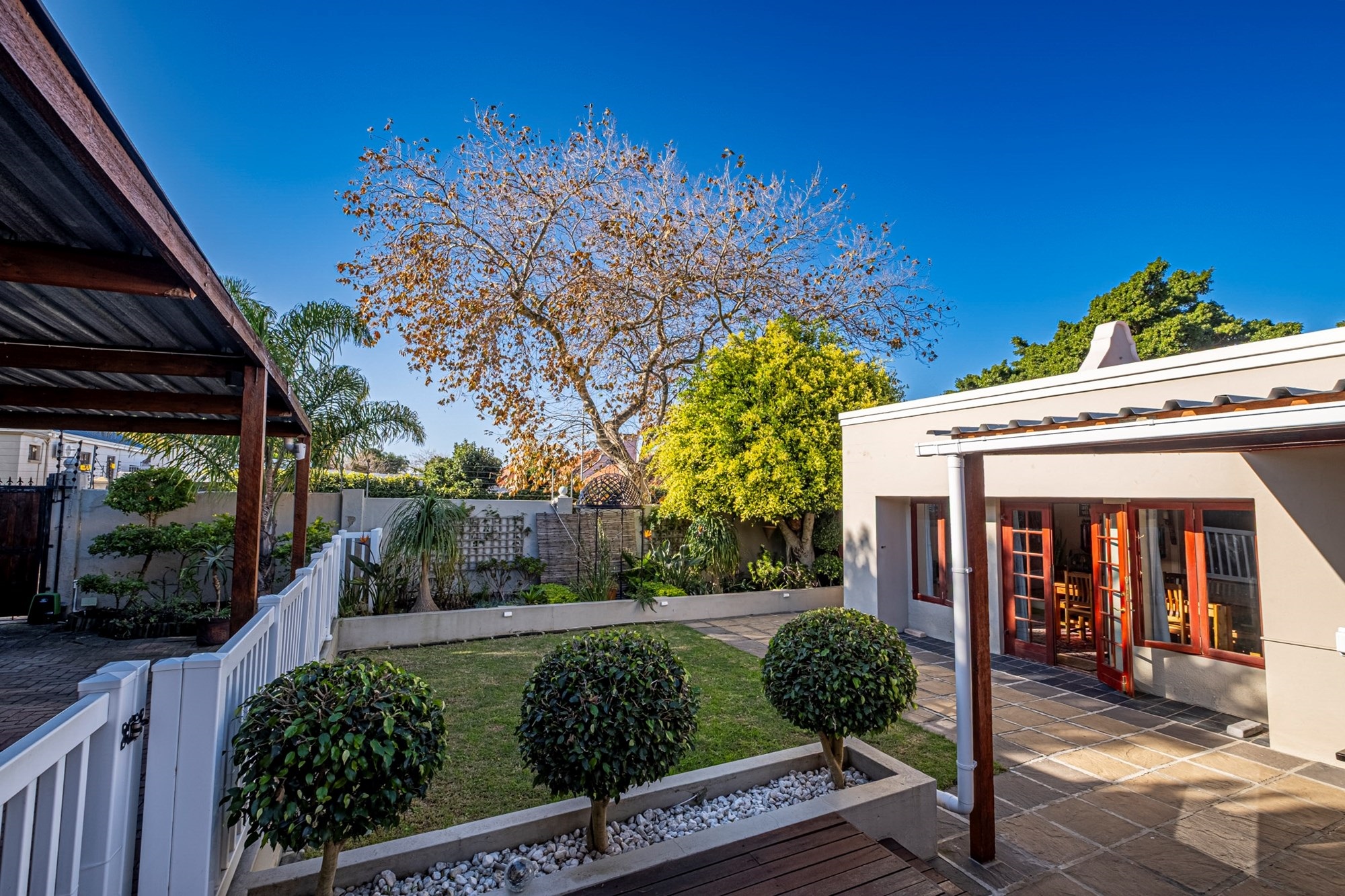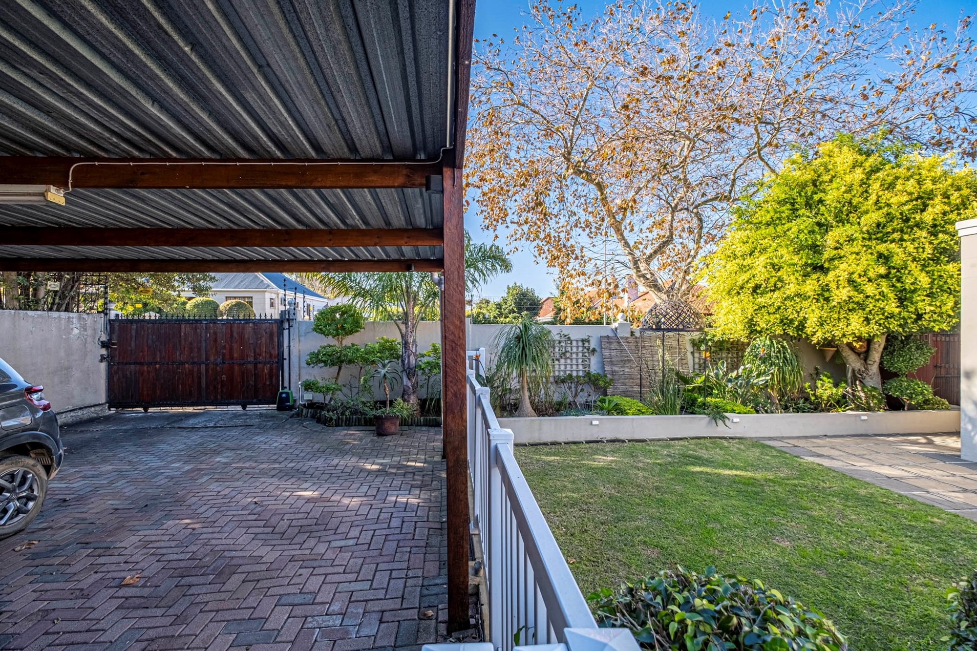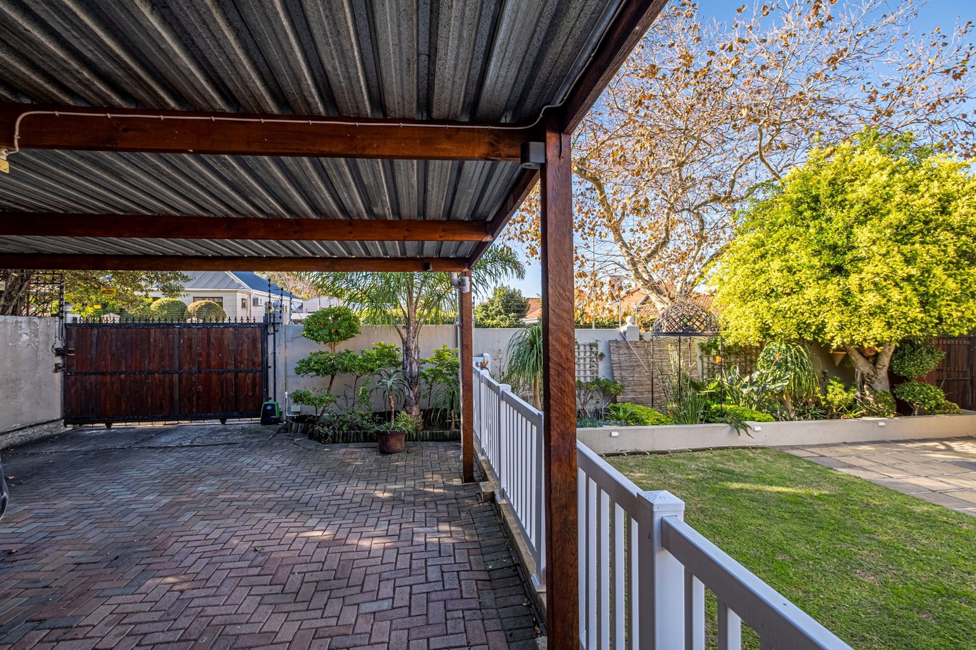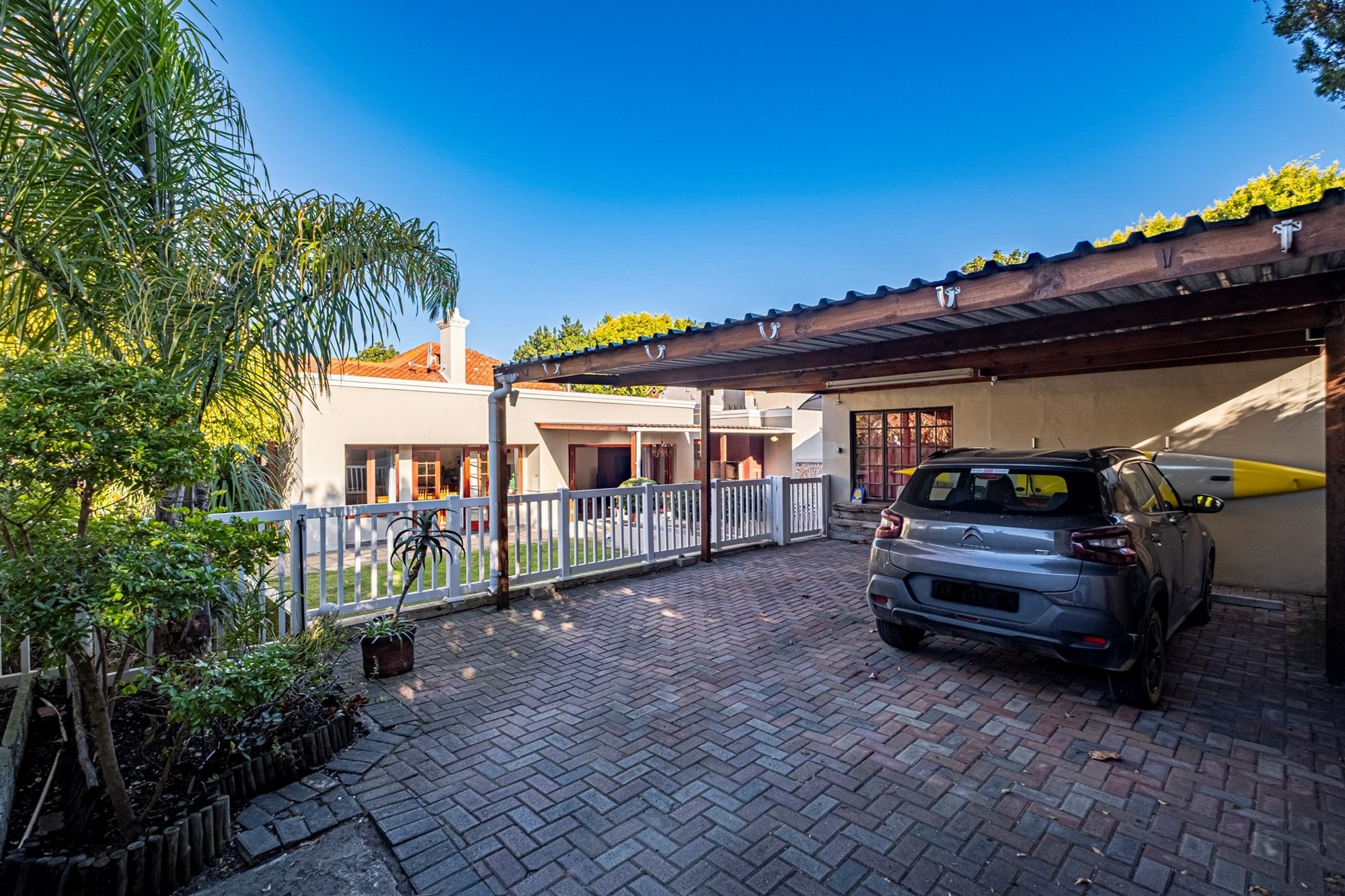 Security & Parking: Ensuring peace of mind, the home is secured with an alarm system, electric gate, and fencing. A double carport provides sheltered parking for two vehicles.