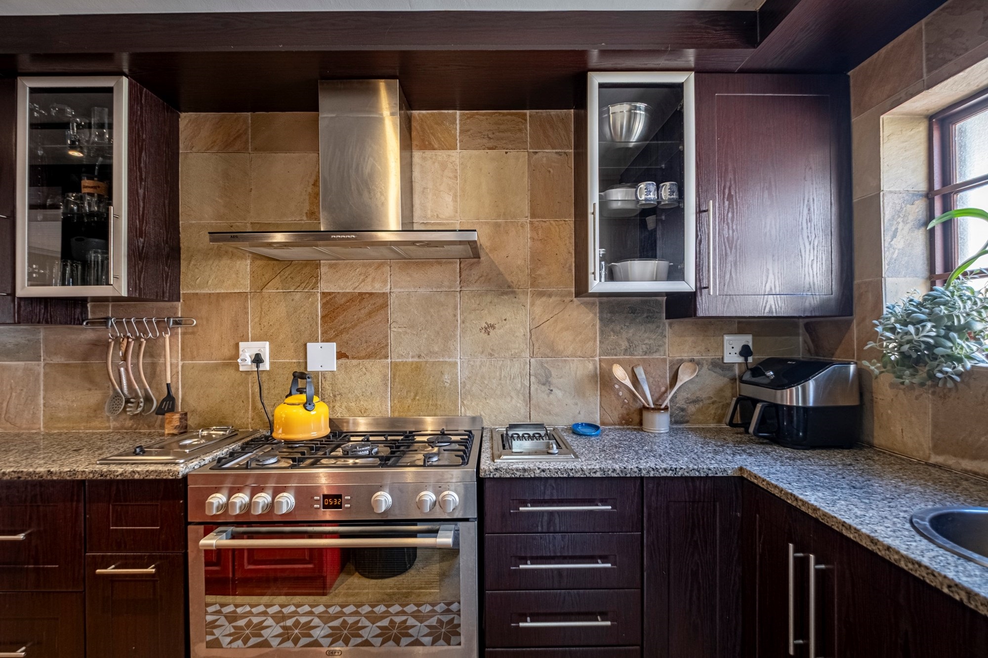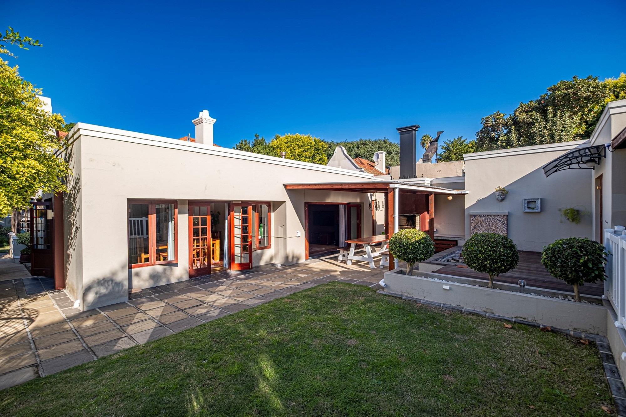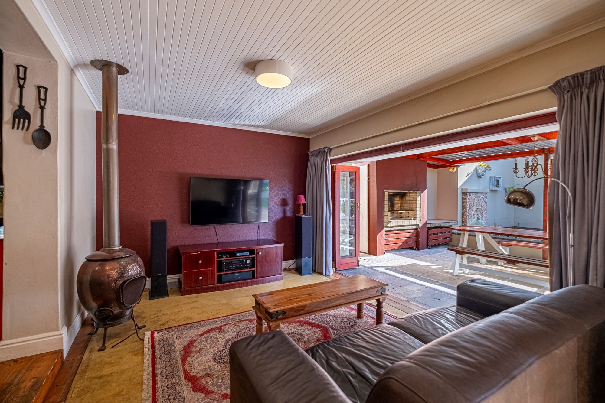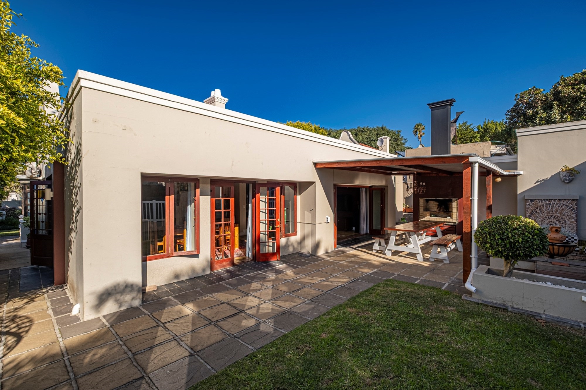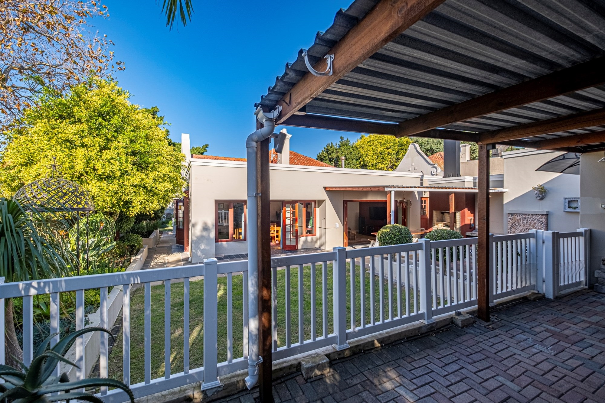 Outdoor Entertainment: The covered patio, complete with a built-in braai, offers an ideal setting for year-round outdoor gatherings.