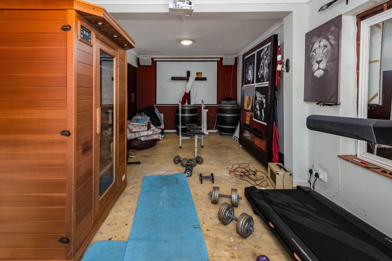 Two versatile outside rooms, each with shower, basin, and toilet. Currently used as a workshop/store room and a gym, but offering excellent flatlet potential.