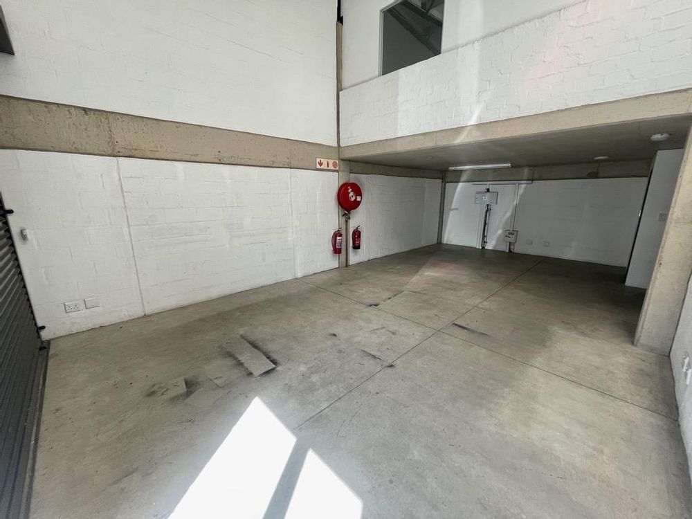 The warehouse features a clean, efficient layout with excellent natural lighting, a 3m x 3m roller shutter door for seamless loading, and 3-phase power. A mezzanine level provides flexibility for storage or a compact office setup, while a built-in storeroom and private ablutions enhance practicality. Two exclusive parking bays are positioned directly in front of the unit.