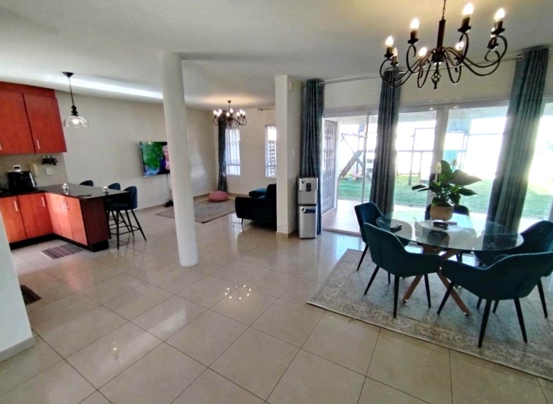 Nestled within a well-secured and prestigious gated complex in Mount Edgecombe, this recently renovated home offers modern comfort and elegant living. Step into bright, spacious, and airy open-plan living areas that seamlessly connect to a beautifully designed, fully fitted kitchen — complete with a separate scullery. The layout creates a perfect flow for convenient everyday living and effortless entertaining.