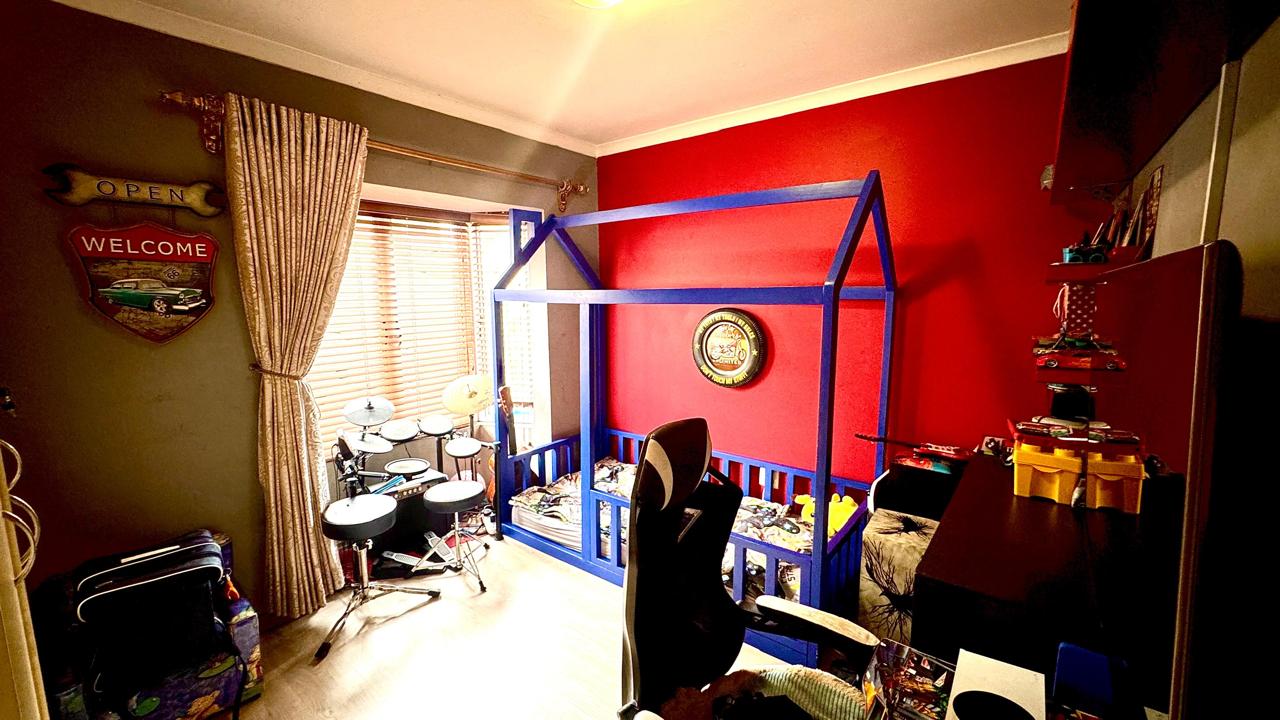 All three bedrooms are spacious and feature built-in cupboards, while the main bedroom includes an elegant en-suite bathroom for added privacy. A single garage ensures secure parking and additional storage options.