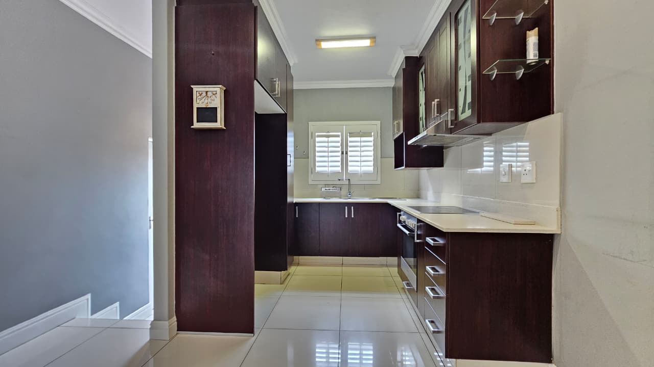 Fully fitted modern kitchen with ample cupboard space.