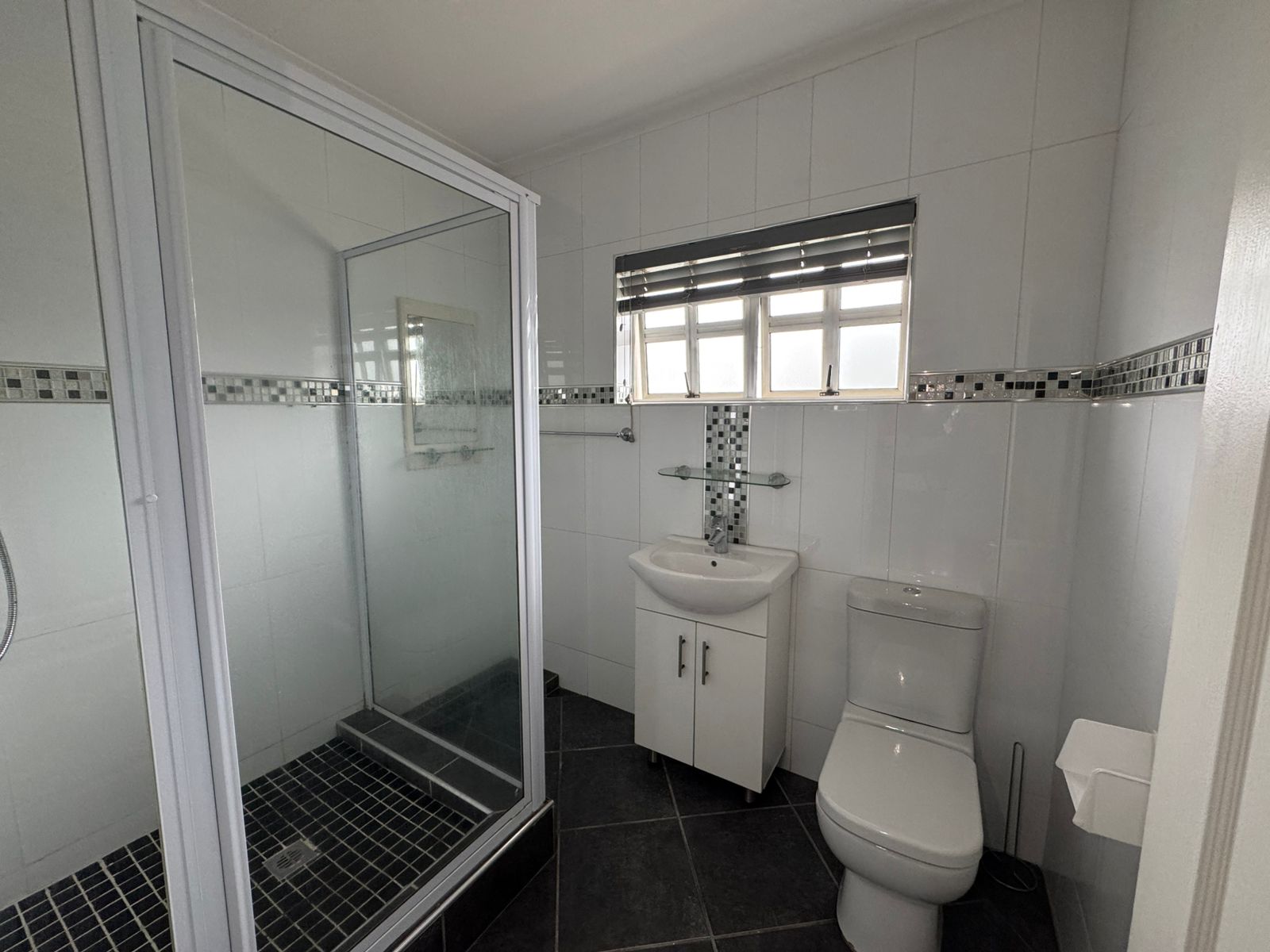 Upstairs, you’ll find three comfortable bedrooms, each fitted with built-in cupboards. The main bedroom boasts an en-suite bathroom, providing privacy and ease of living. All bedrooms are air-conditioned. Two bedrooms have access to a balcony.