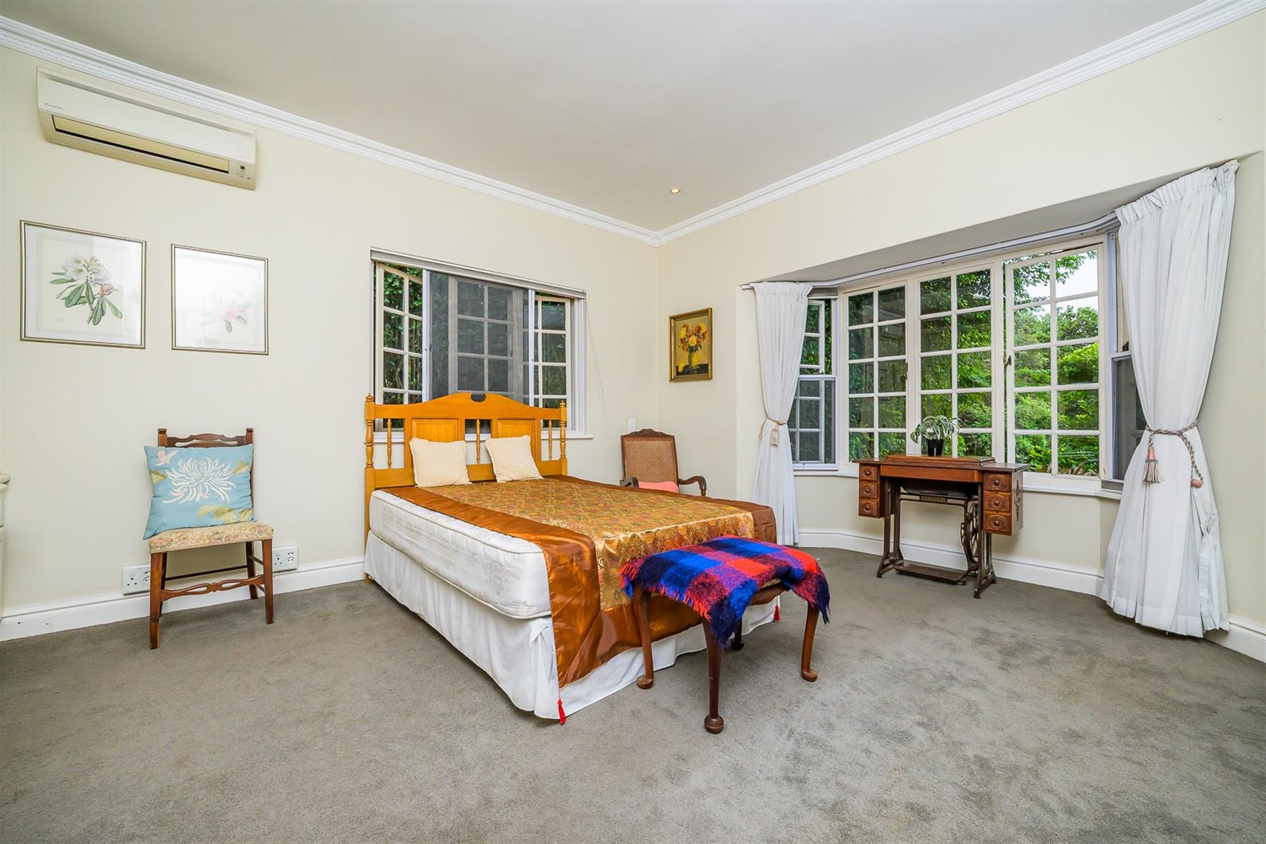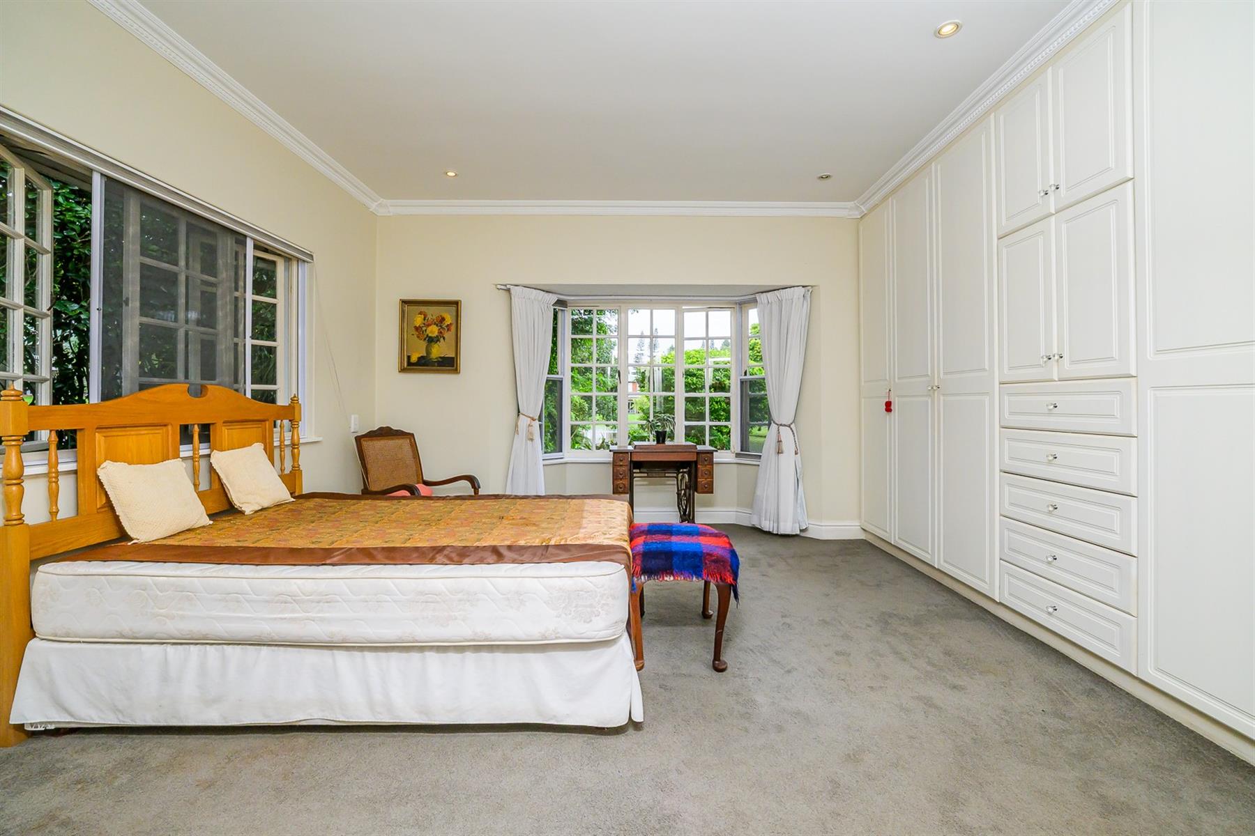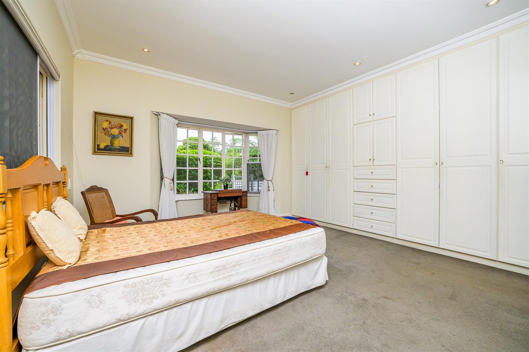 Accommodation includes three bedrooms. The main bedroom has ample cupboard space and a full en-suite bathroom, while two additional bedrooms share a full family bathroom.
