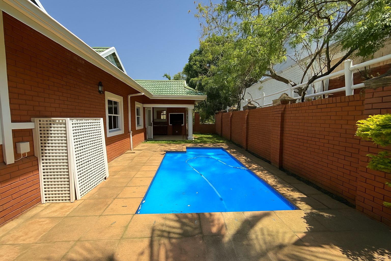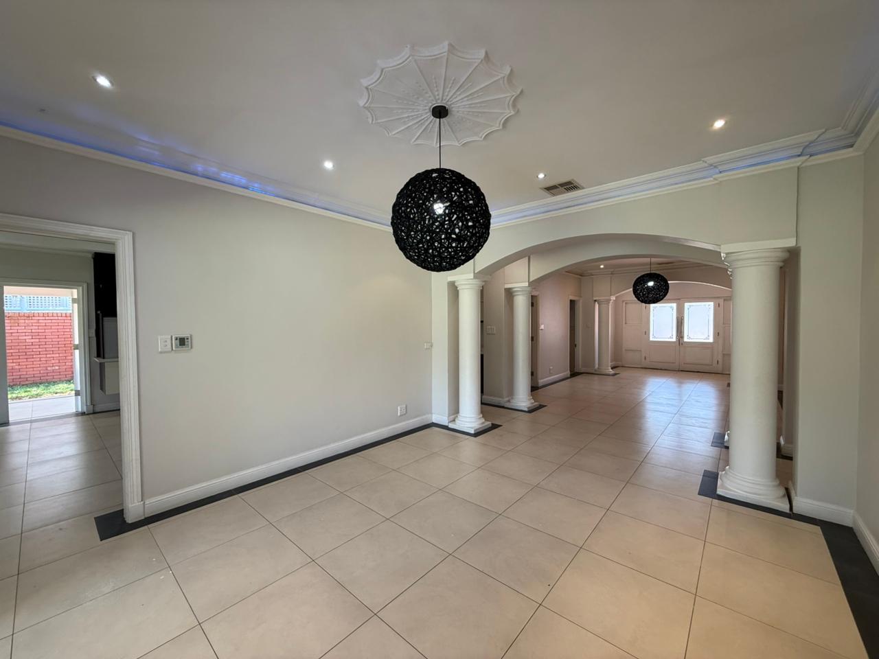 Four generously sized bedrooms, each with its own en-suite bathroom and dressing room. Two stylish lounges and a dining area flow seamlessly into a large, modern kitchen, complete with a scullery, walk-in pantry, gas cooker and eye level ovens. A fitted study with multiple workstations provides a quiet, productive environment. The covered veranda is perfect for alfresco dining and sundowners, A pool is nestled in a secluded area of the garden, offering a peaceful retreat. A charming 2-bedroom flatlet above the garages includes a lounge, kitchen, and bathroom, perfect as a granny cottage. The property is pet friendly.