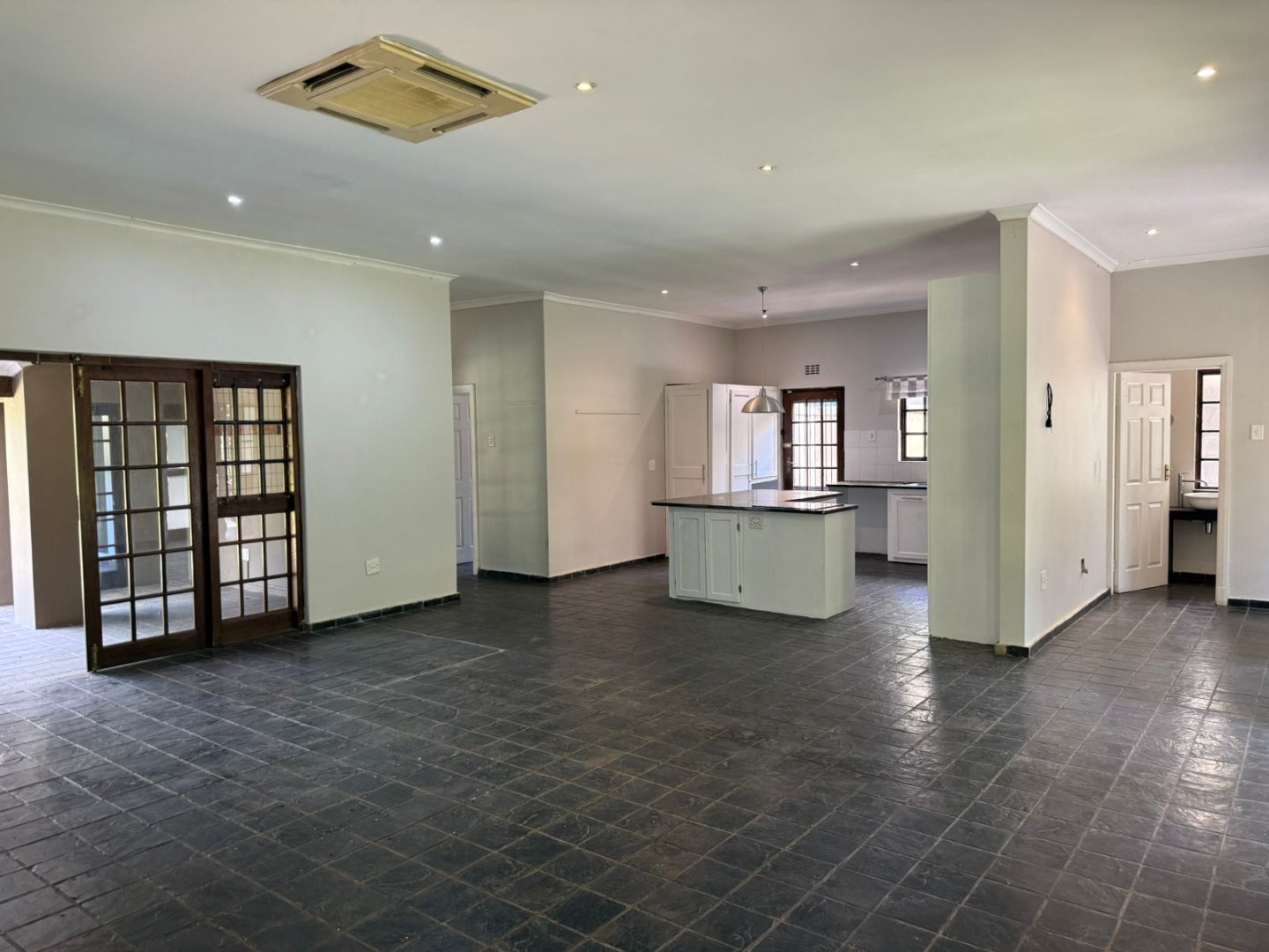 A beautiful house in the tranquil Mount Moreland Conservancy. The large open plan lounge and dining room with central air conditioning opens to a covered veranda overlooking a lush garden and inviting pool. A spacious kitchen with a centre isle has ample storage space and is plumbed for a washing machine. The bedrooms are generous, the main having a full en suite bathroom while the 2 other bedrooms share a bathroom. There is also a guest toilet.