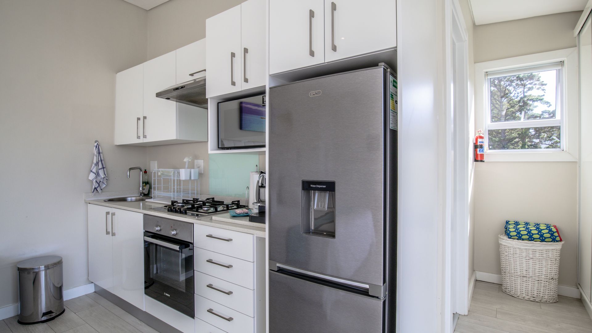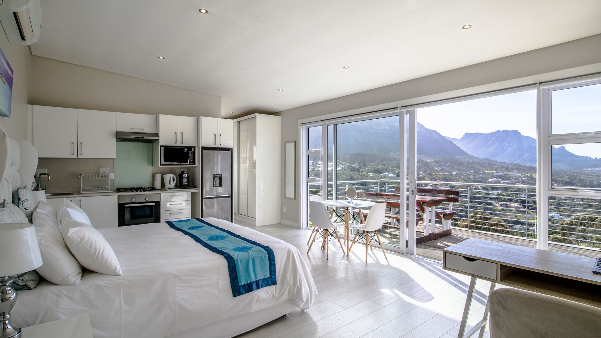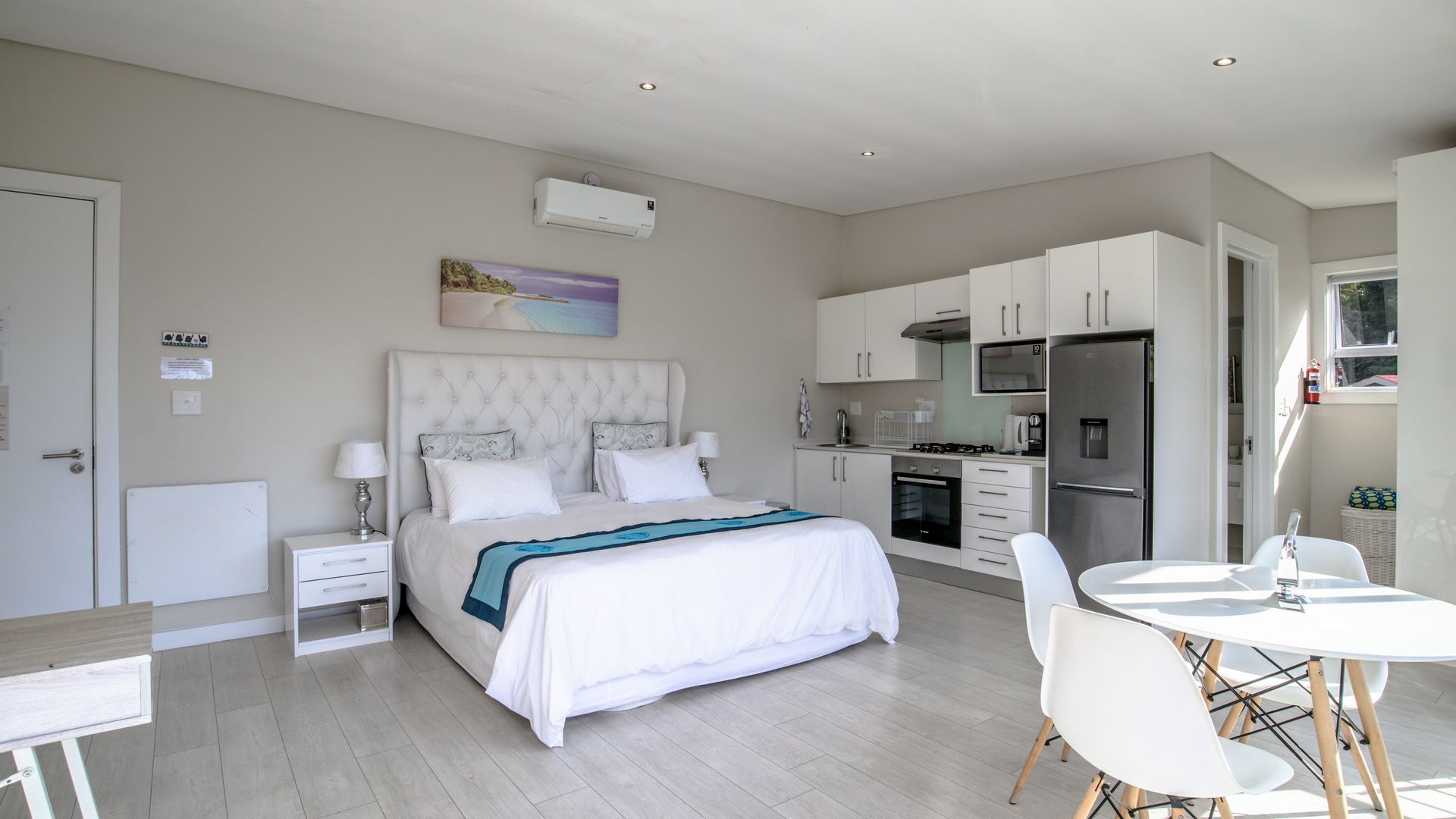 Level Three: Three light-filled studio apartments, each with a full bathroom, air conditioning, a kitchenette, and sliding doors opening onto private balconies with braai areas and captivating views. A shared laundry and communal seating area enhance convenience for guests.