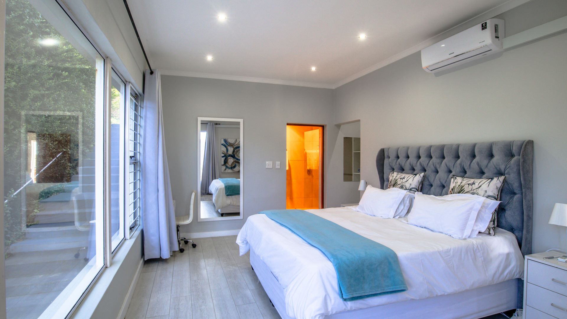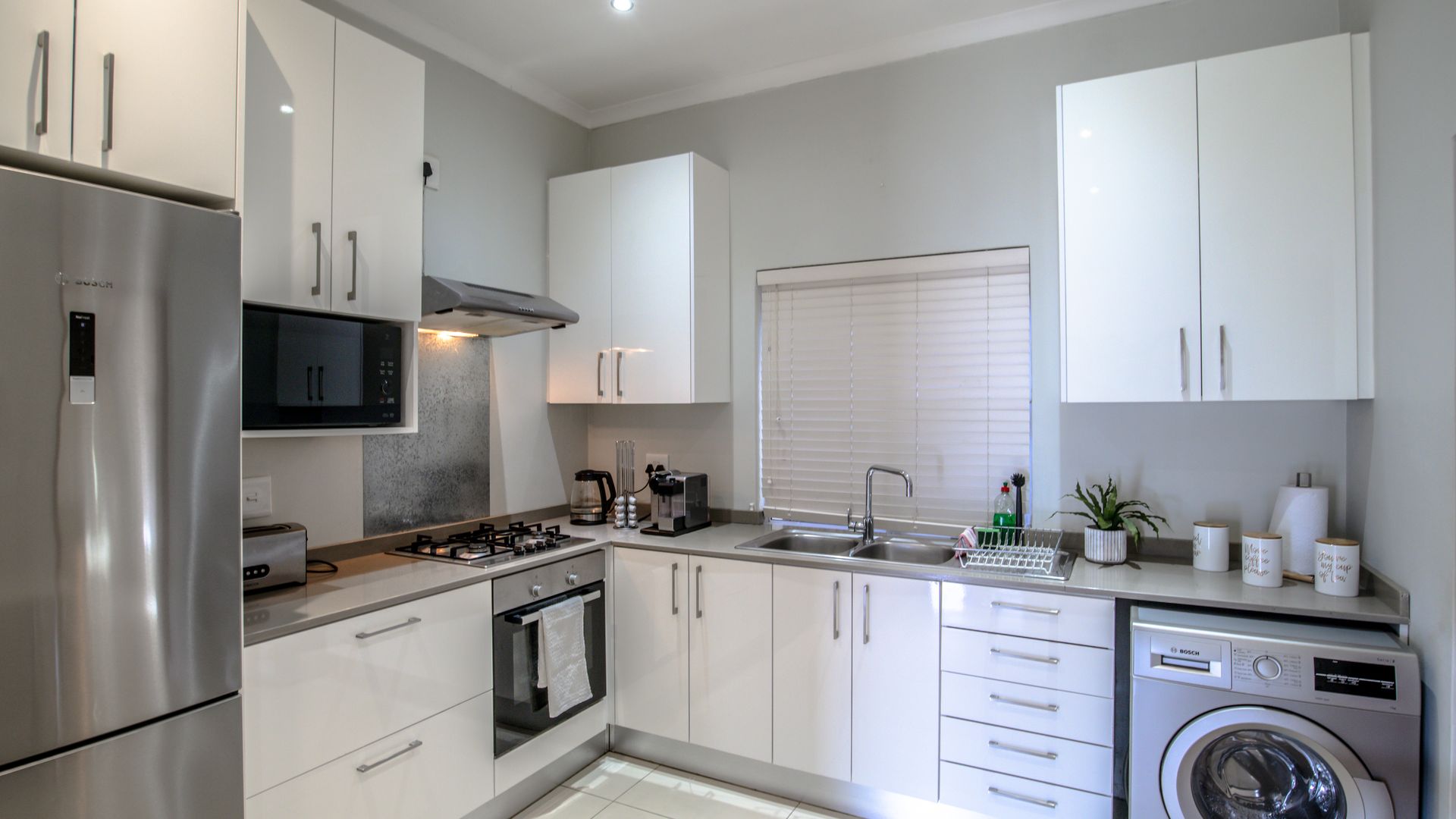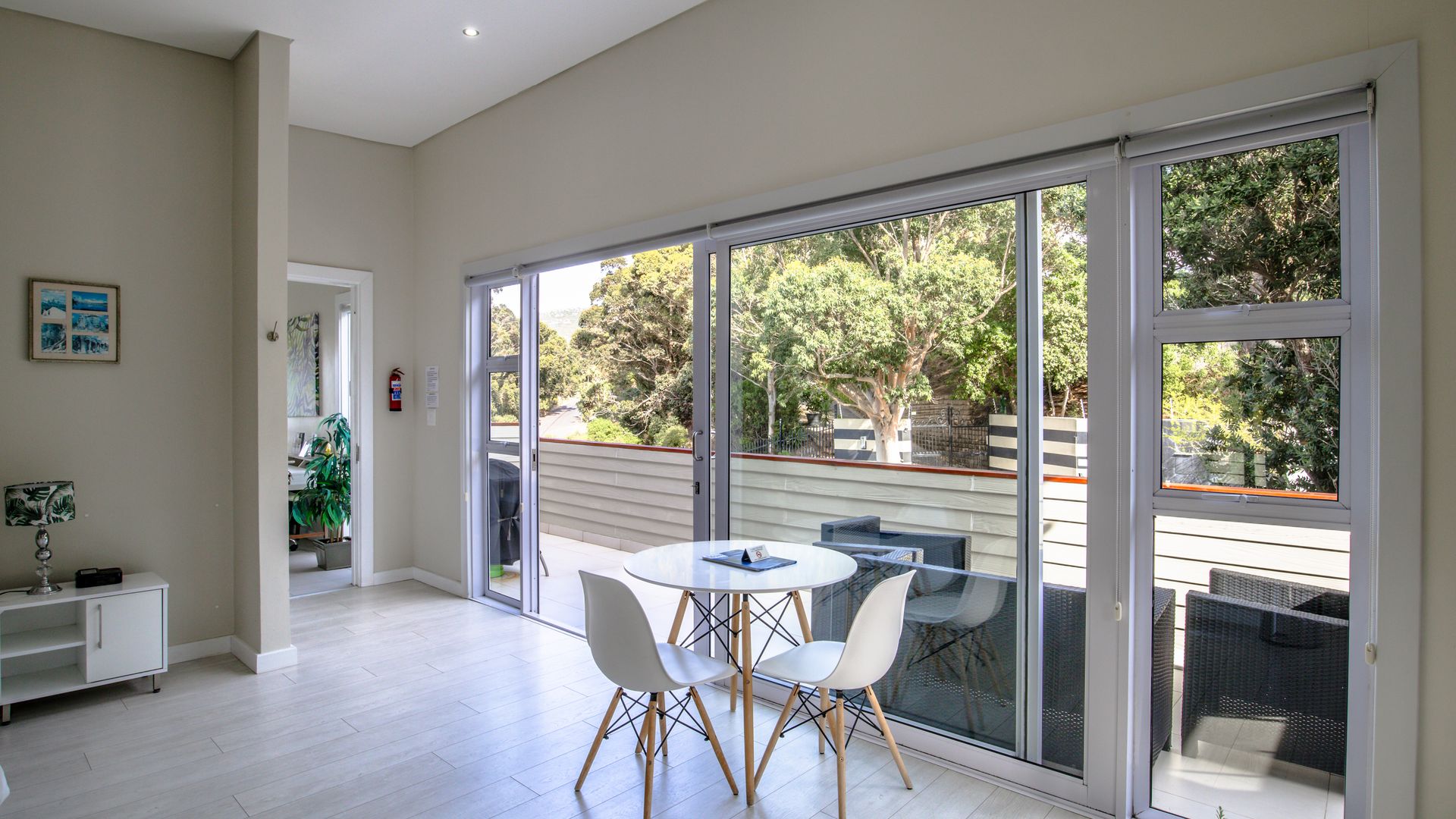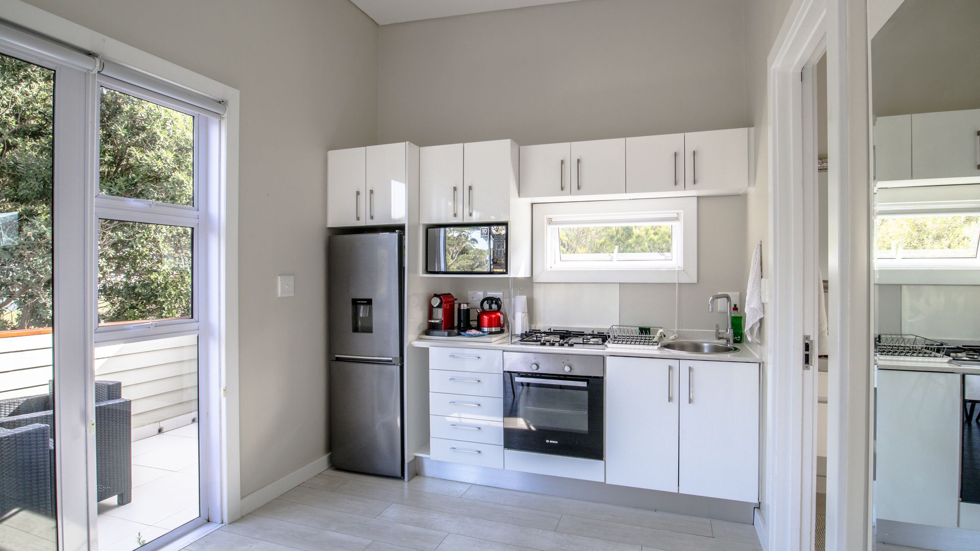 Level Three: Three light-filled studio apartments, each with a full bathroom, air conditioning, a kitchenette, and sliding doors opening onto private balconies with braai areas and captivating views. A shared laundry and communal seating area enhance convenience for guests.