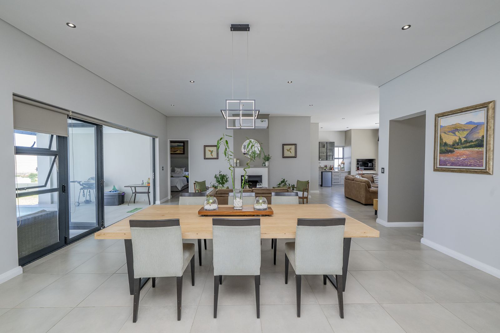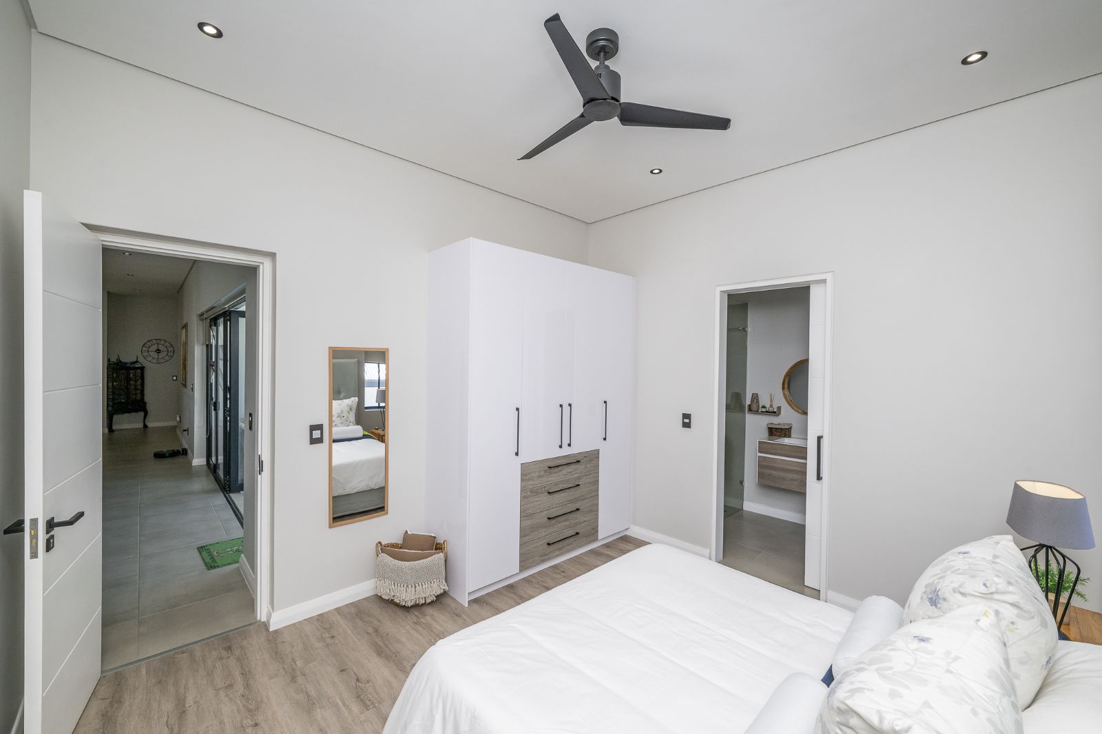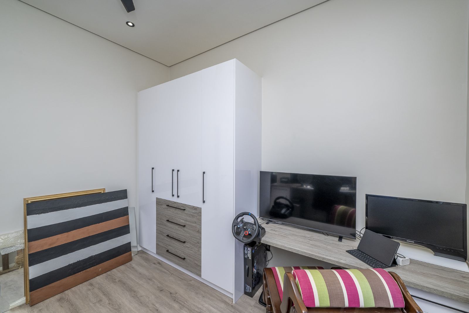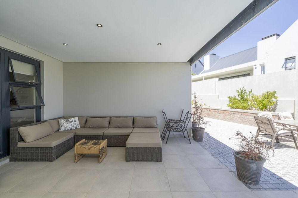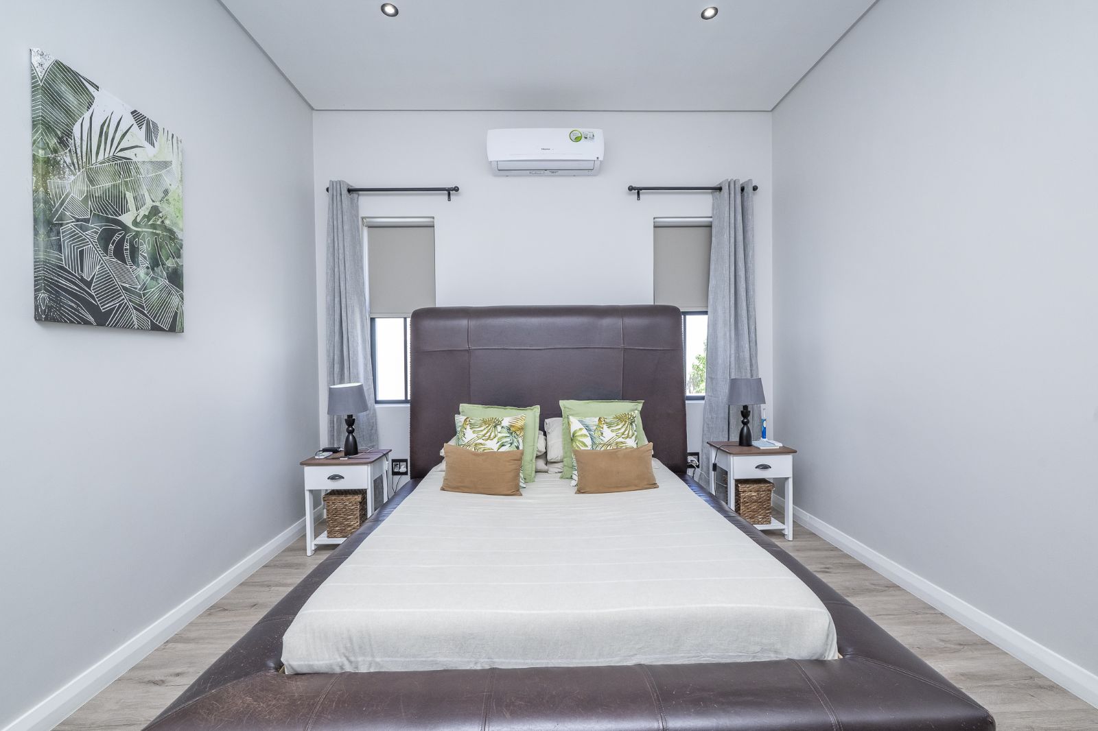 Perfect for entertaining, the home offers an extra-deep built-in braai area with cupboards for glassware and space for a fridge, opening via sliding doors onto a large patio overlooking the swimming pool. The paved outdoor area with planter boxes provides space to add an additional outside braai, all surrounded by a low-maintenance garden