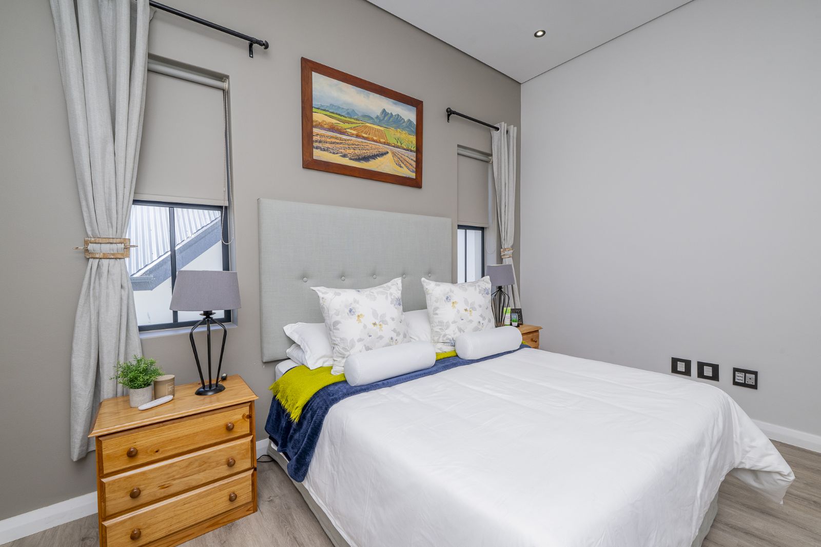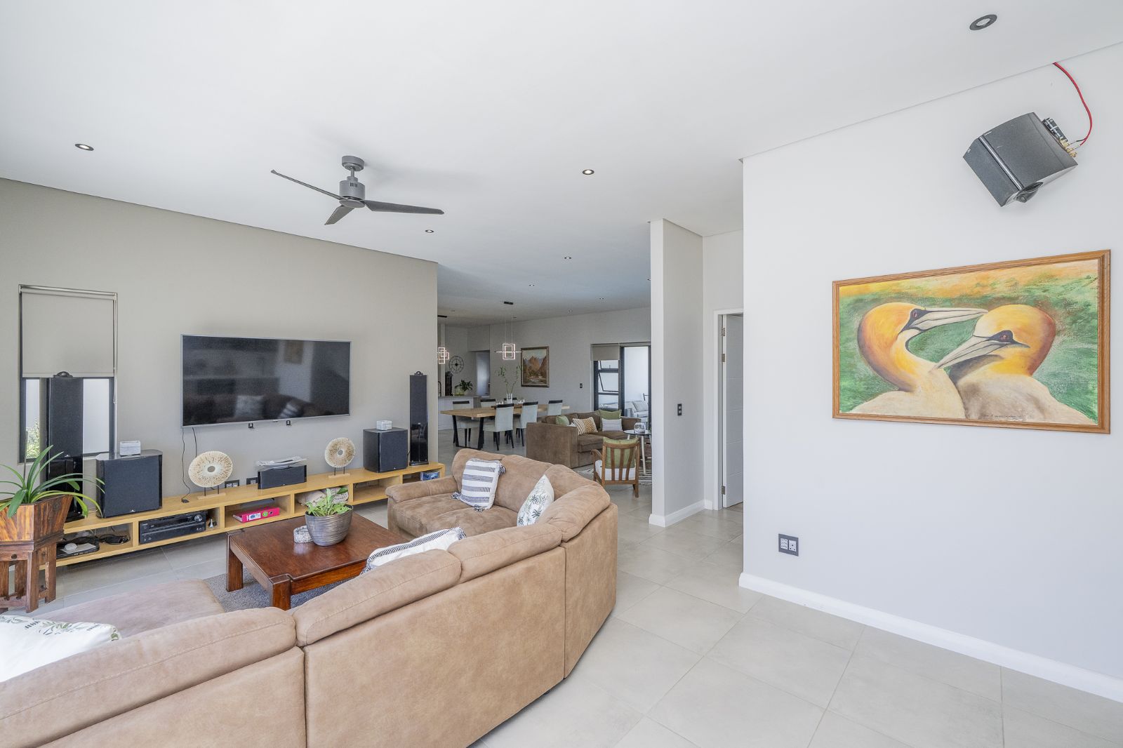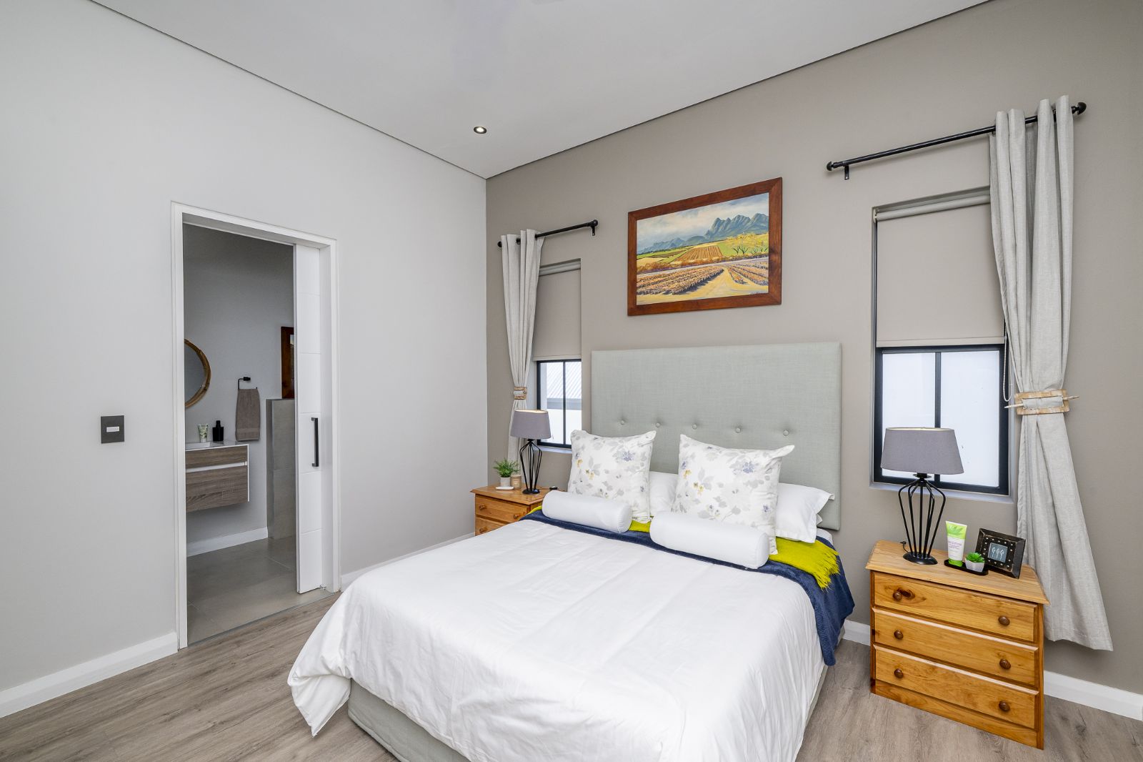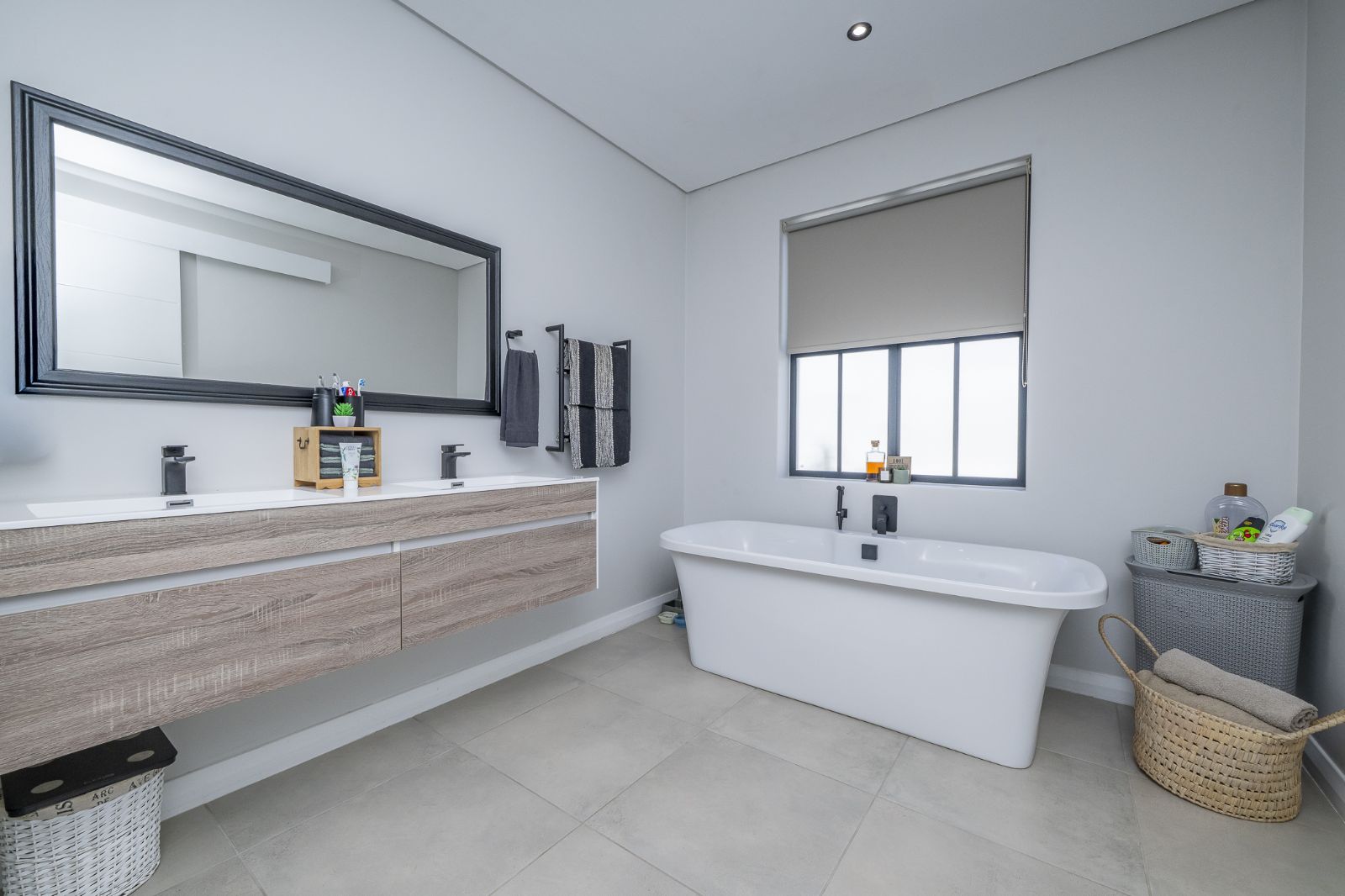 Perfect for entertaining, the home offers an extra-deep built-in braai area with cupboards for glassware and space for a fridge, opening via sliding doors onto a large patio overlooking the swimming pool. The paved outdoor area with planter boxes provides space to add an additional outside braai, all surrounded by a low-maintenance garden