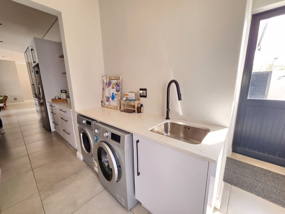 Step inside and be captivated by the open-plan design, seamlessly connecting the modern kitchen to the inviting living areas. The kitchen is a chef's dream, featuring granite tops, gas/electric stove, extractor fan, and dishwasher connection. A spacious pantry and scullery offer additional convenience, while laundry facilities ensure effortless chores.
