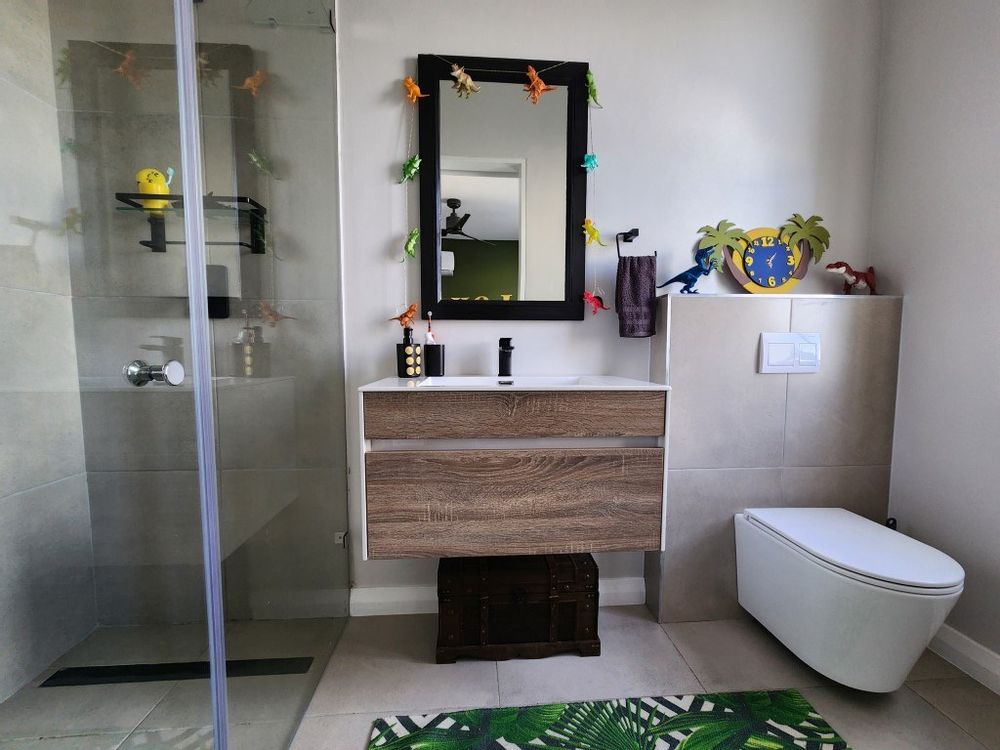 The home features three beautifully appointed bedrooms, all with stylish vinyl flooring. The main en suite offers a private sanctuary, while a guest toilet caters to visitors. Three modern bathrooms ensure comfort and convenience for the entire family. A dedicated study room provides the ideal space for work or quiet reflection.
