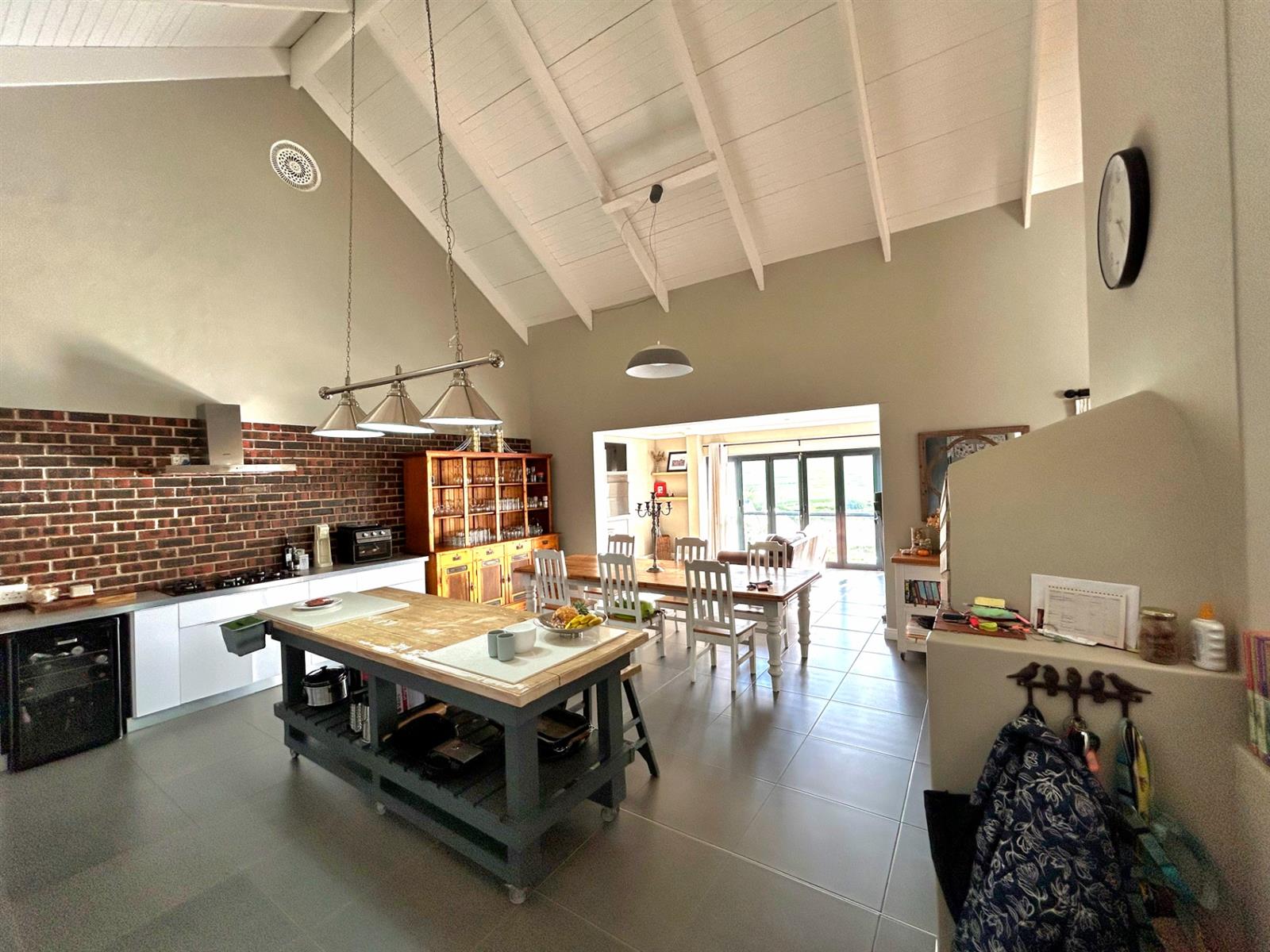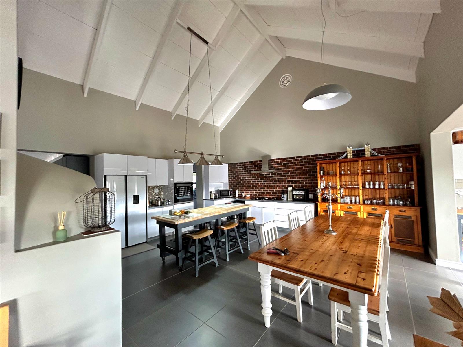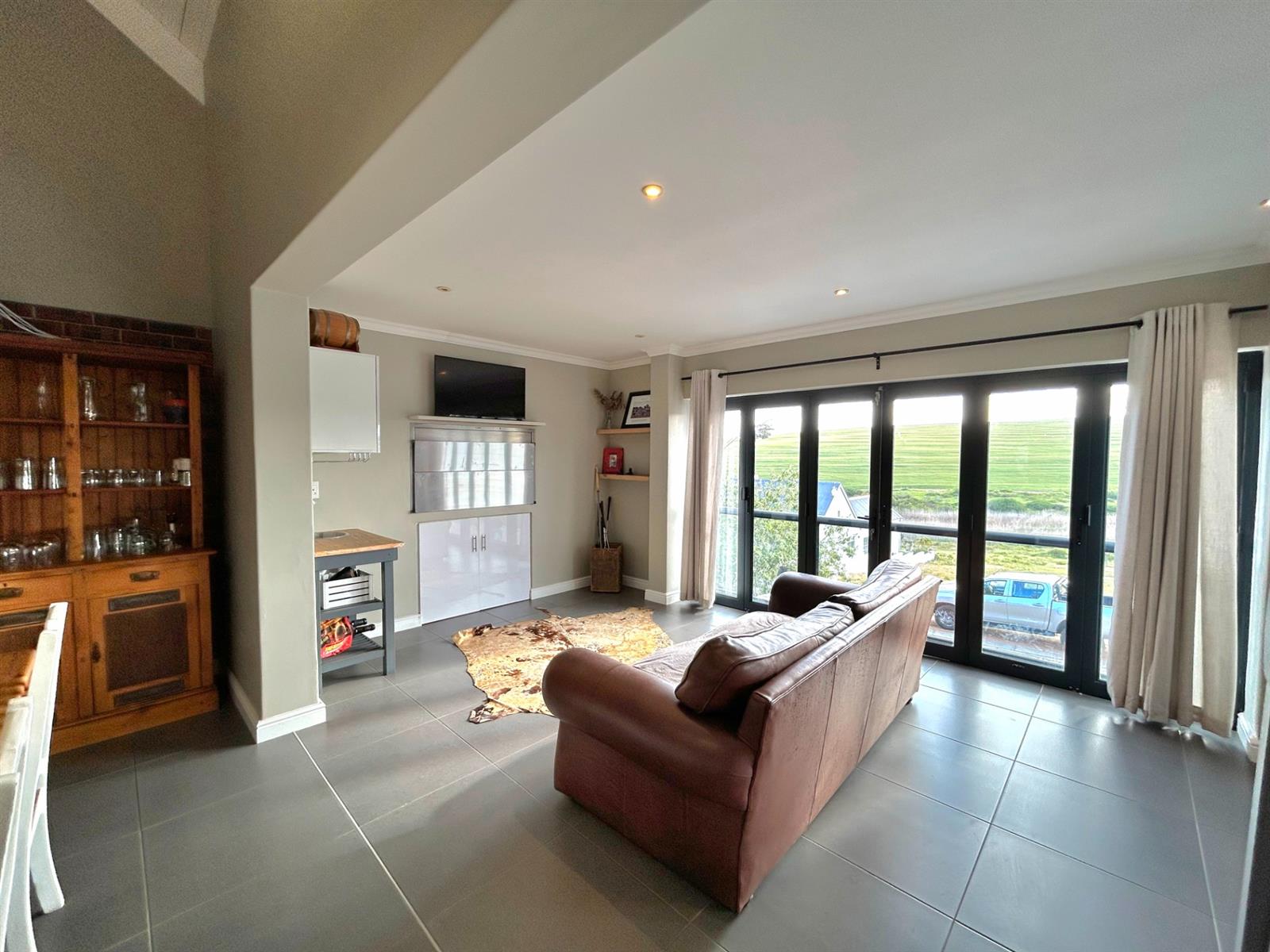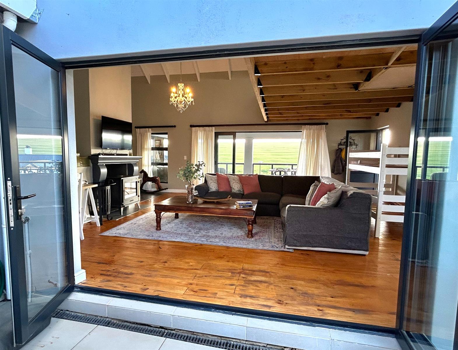 - Spacious Living Areas: A large TV lounge with a cozy fireplace, a dining area accommodating a family size dining table and a dedicated braai room with large windows overlooking the sweeping farmland views. The loft in the lounge is ideal as a children play area or for additional storage space.