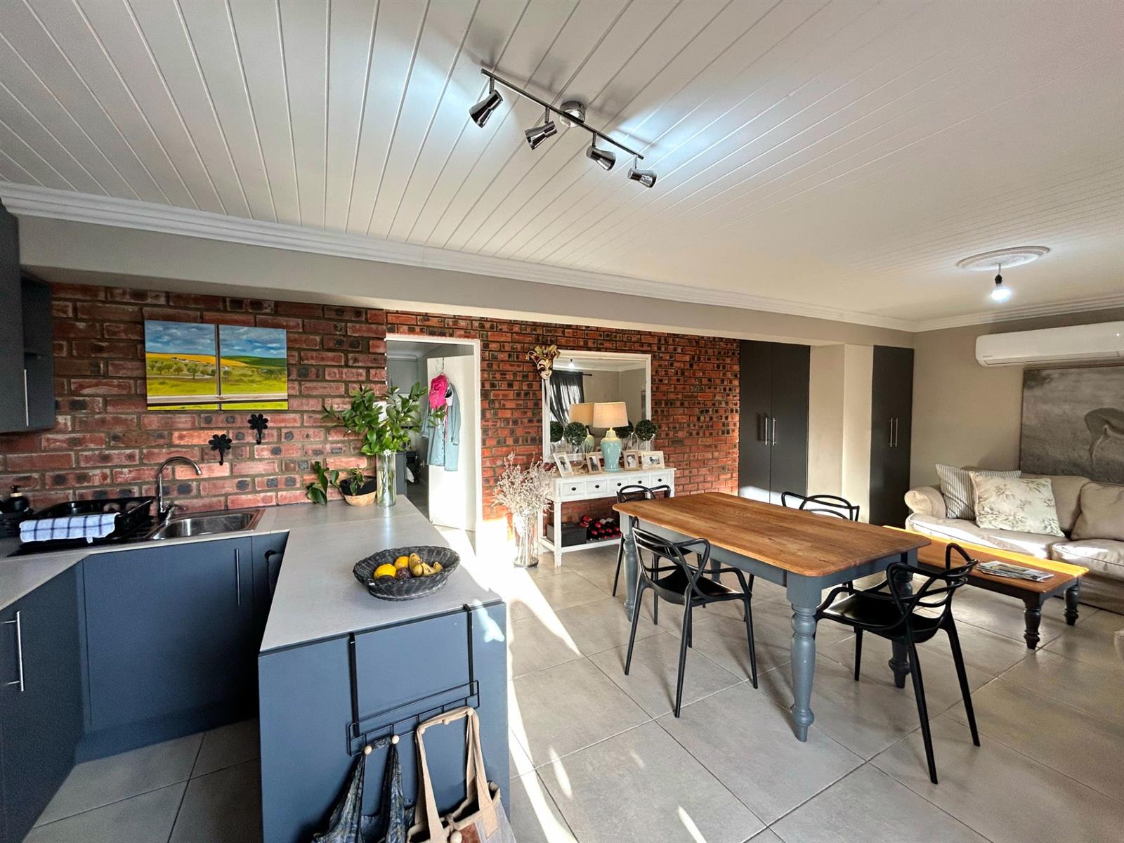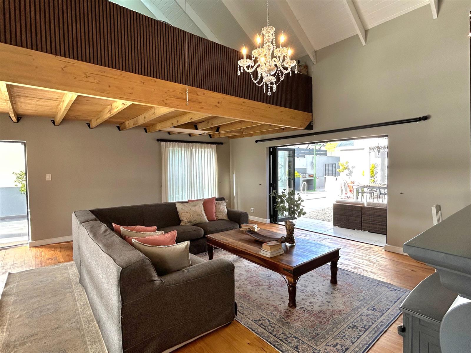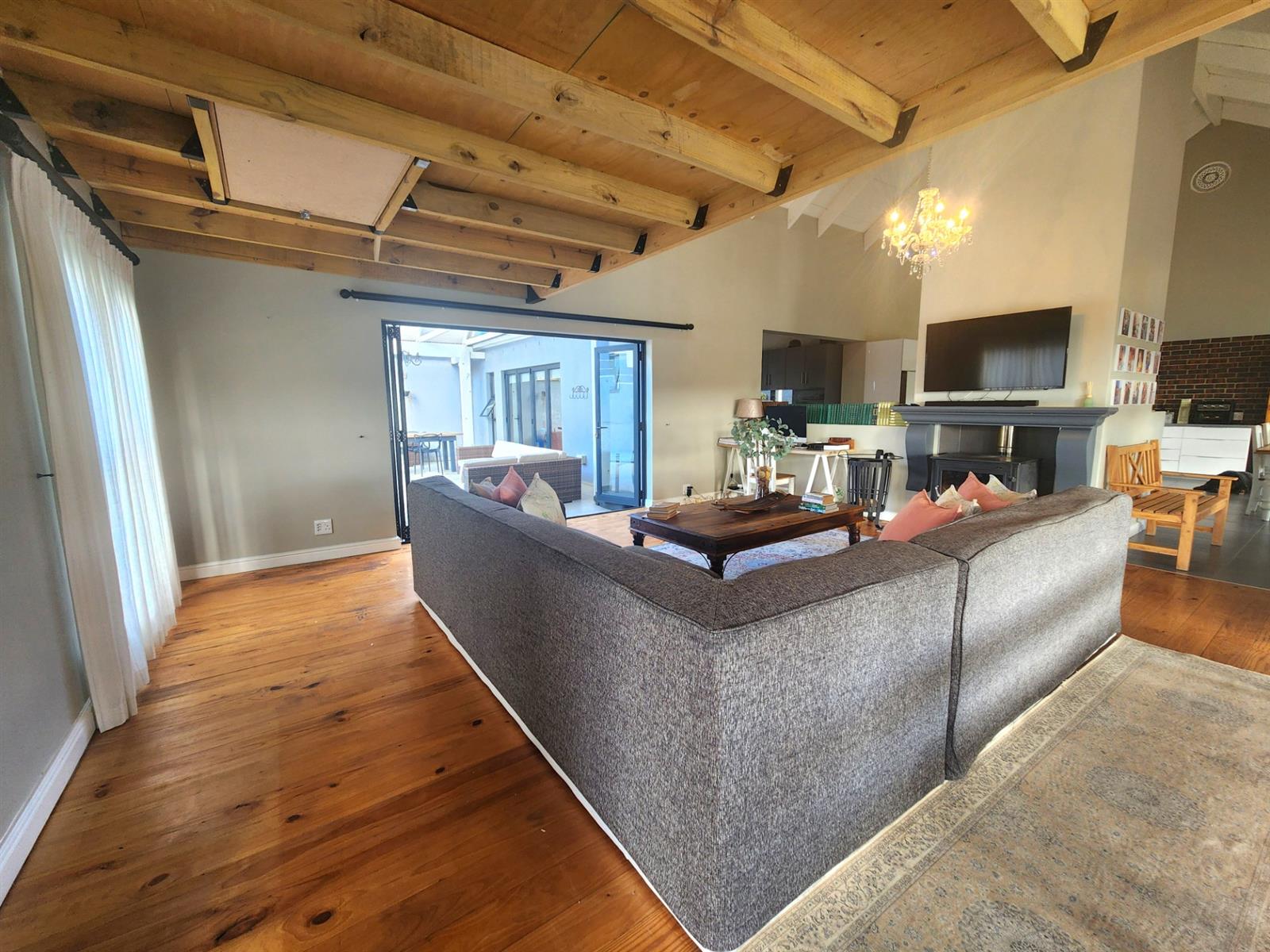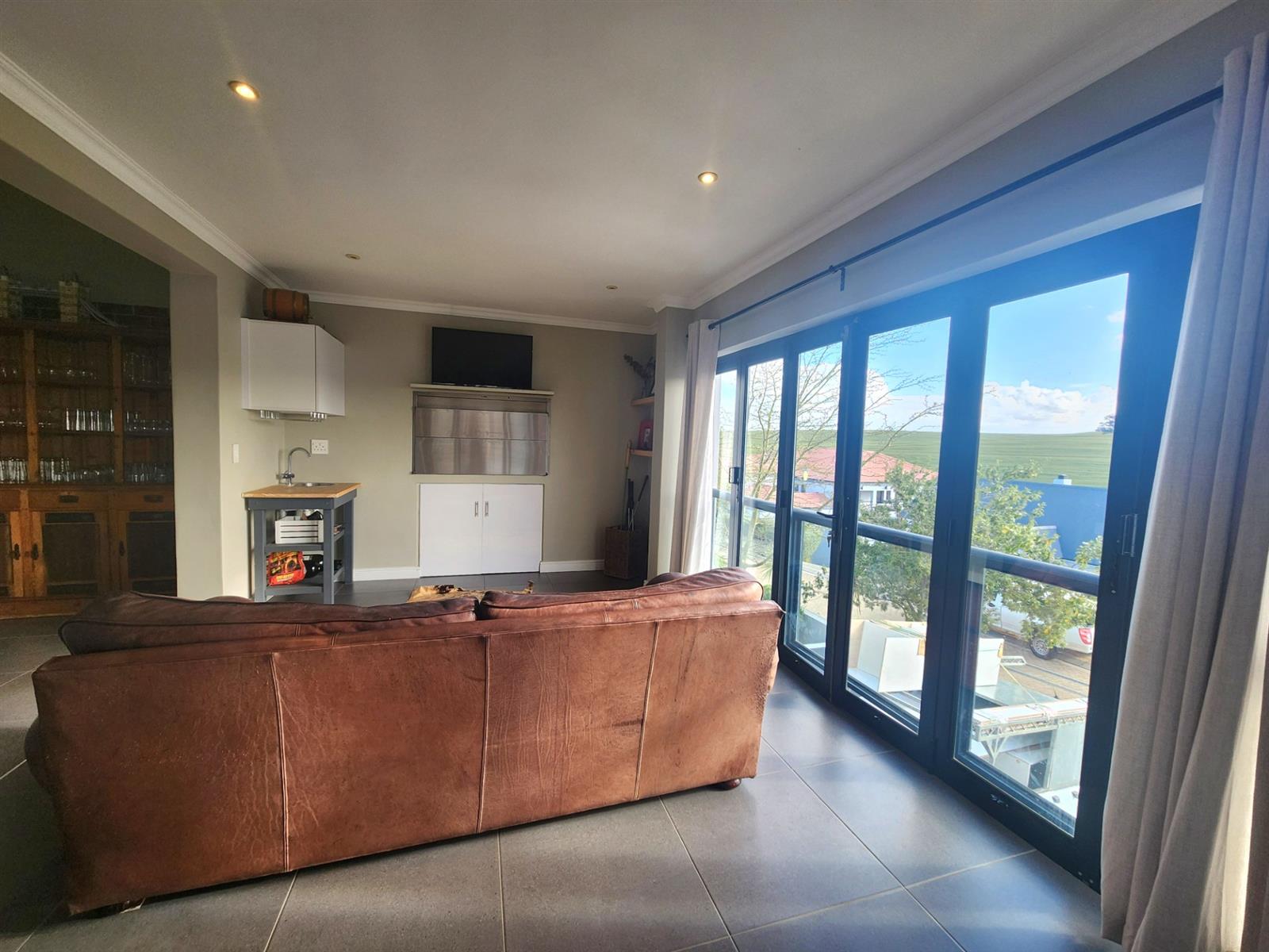 - Spacious Living Areas: A large TV lounge with a cozy fireplace, a dining area accommodating a family size dining table and a dedicated braai room with large windows overlooking the sweeping farmland views. The loft in the lounge is ideal as a children play area or for additional storage space.