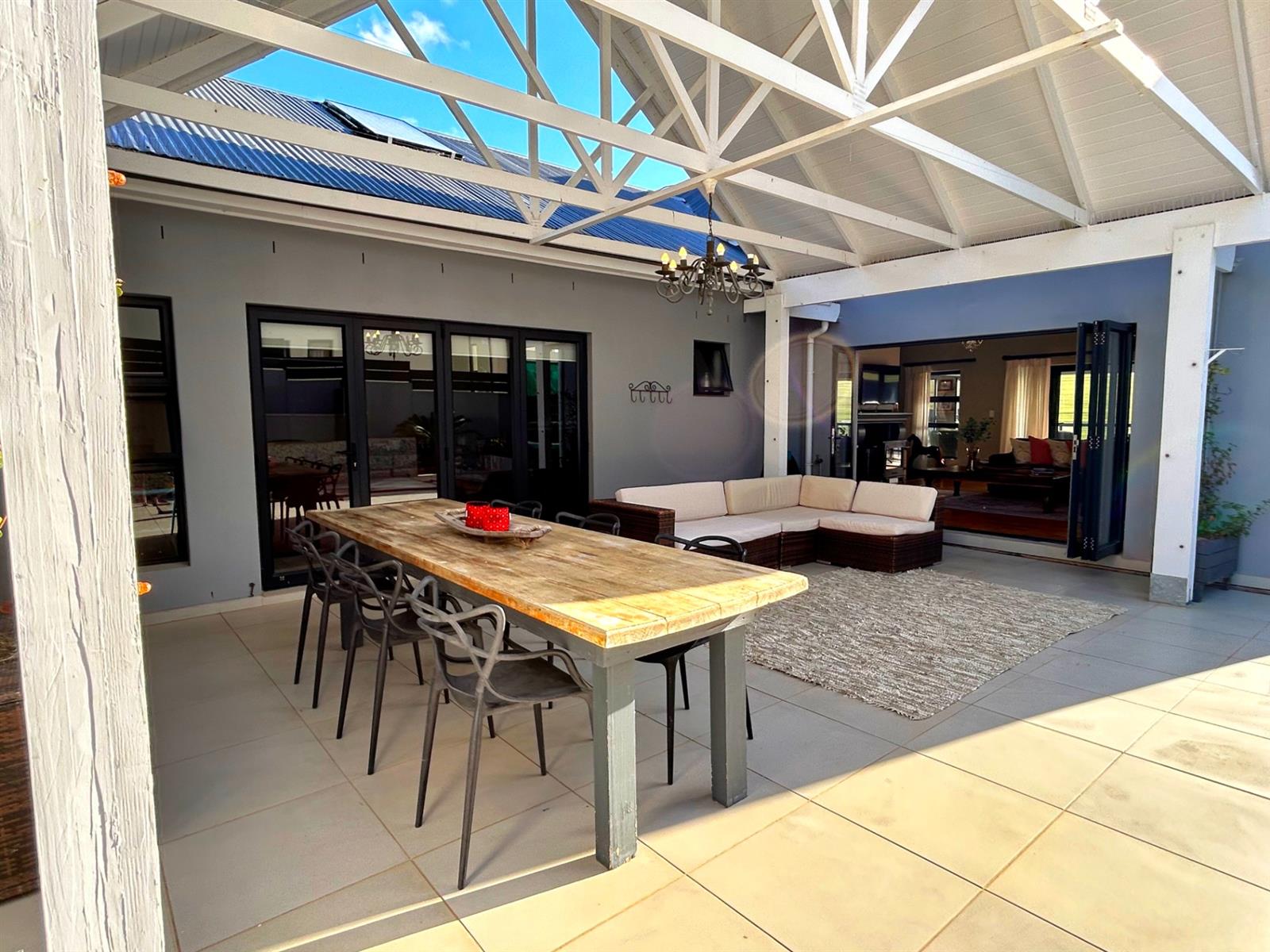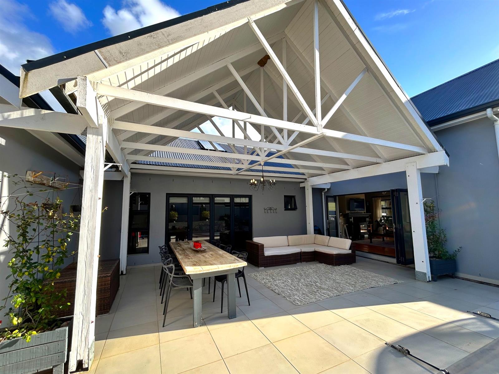 - Seamless Indoor-Outdoor Flow: Stacking doors open onto multiple patio areas, designed for social gatherings and family relaxation.