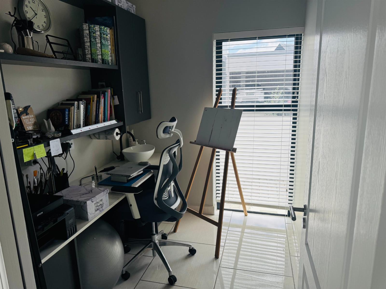 The home offers two office spaces — one upstairs and one downstairs — ideal for remote work or a creative studio setup.