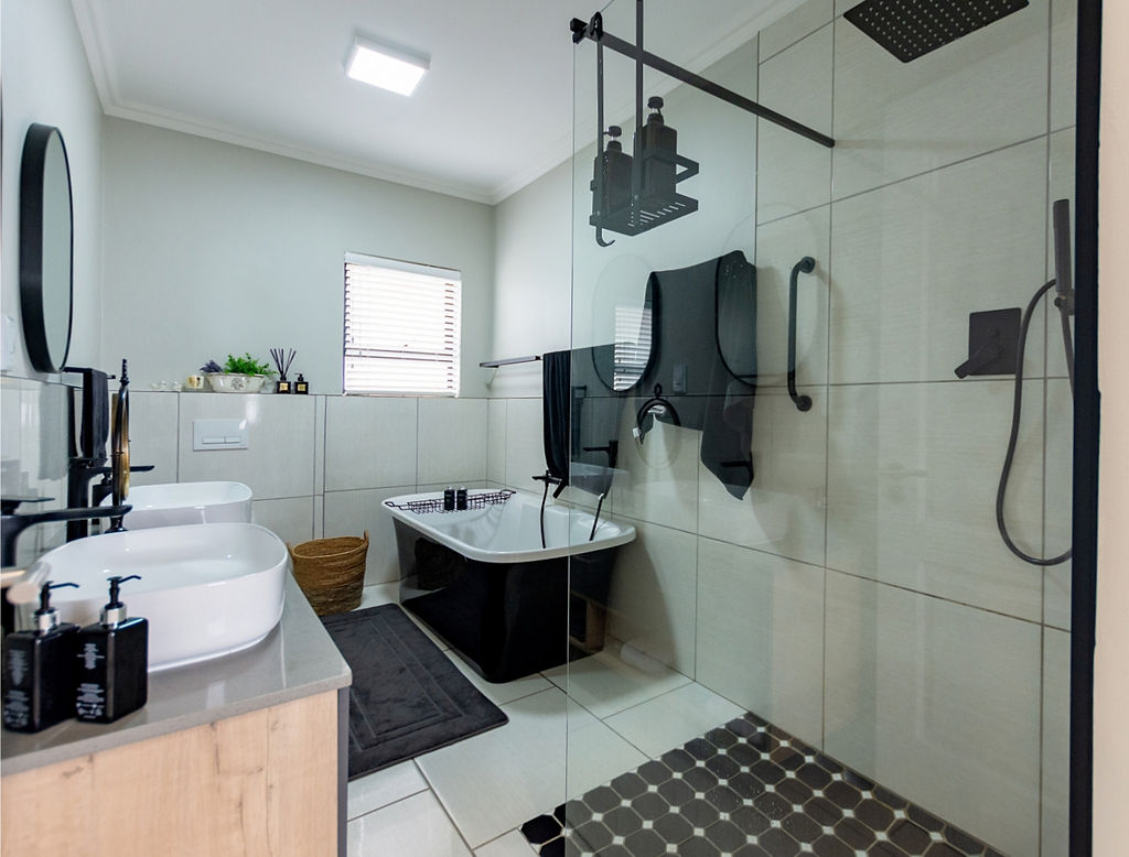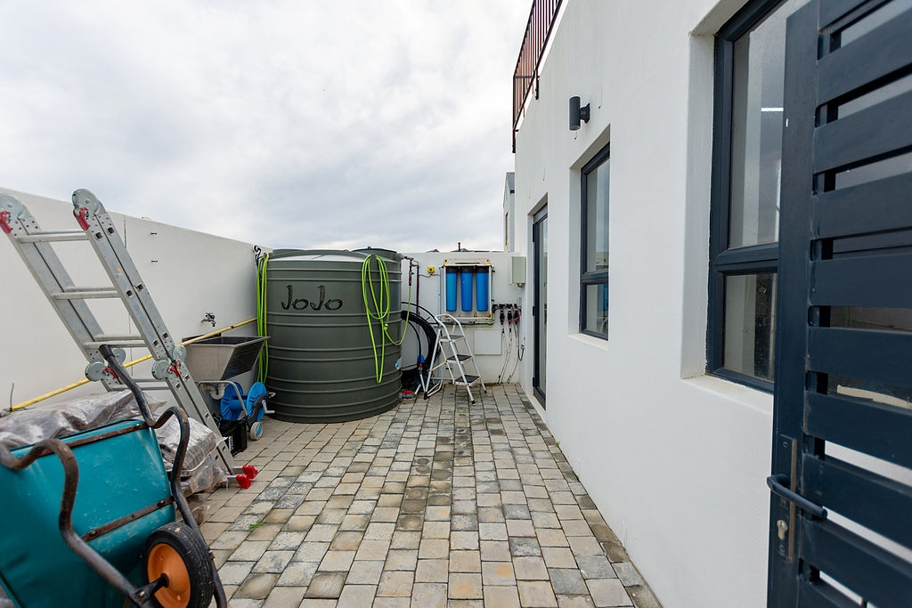 The Borehole pumps 25 000 litres per hour with complete filtration system, supplying safe drinkable water. A 2000 litre water storage tank comes with an electronic GeyserWise pump to supply hot water, a combination of solar and gas.