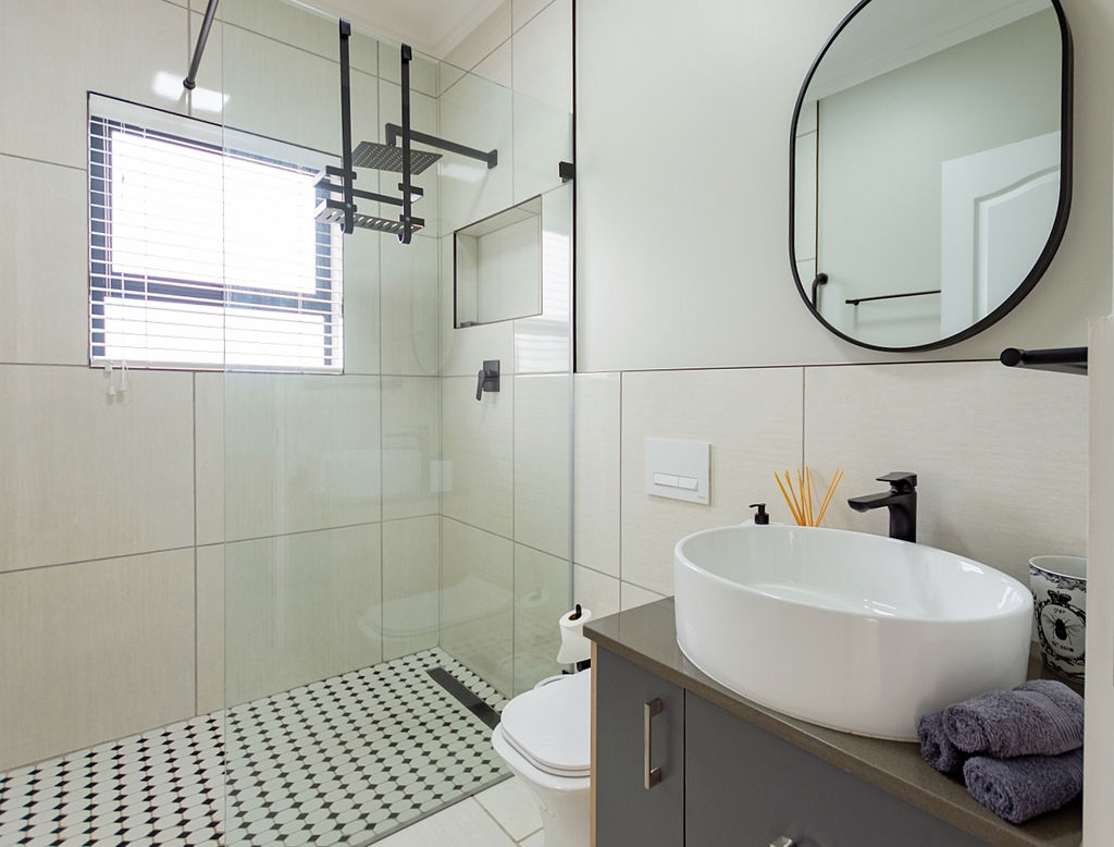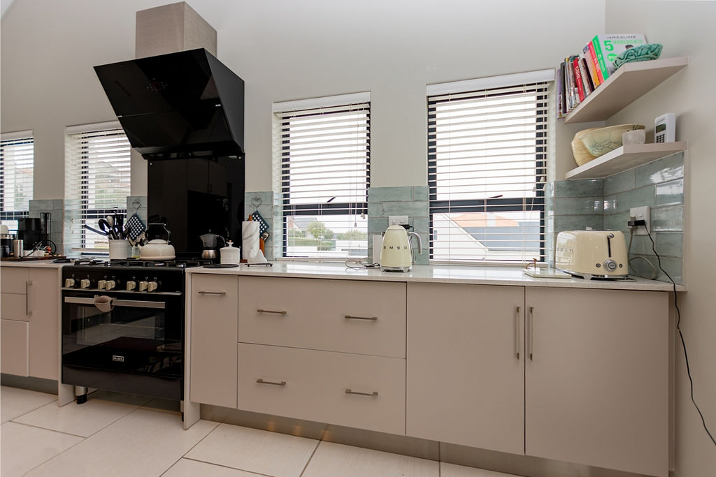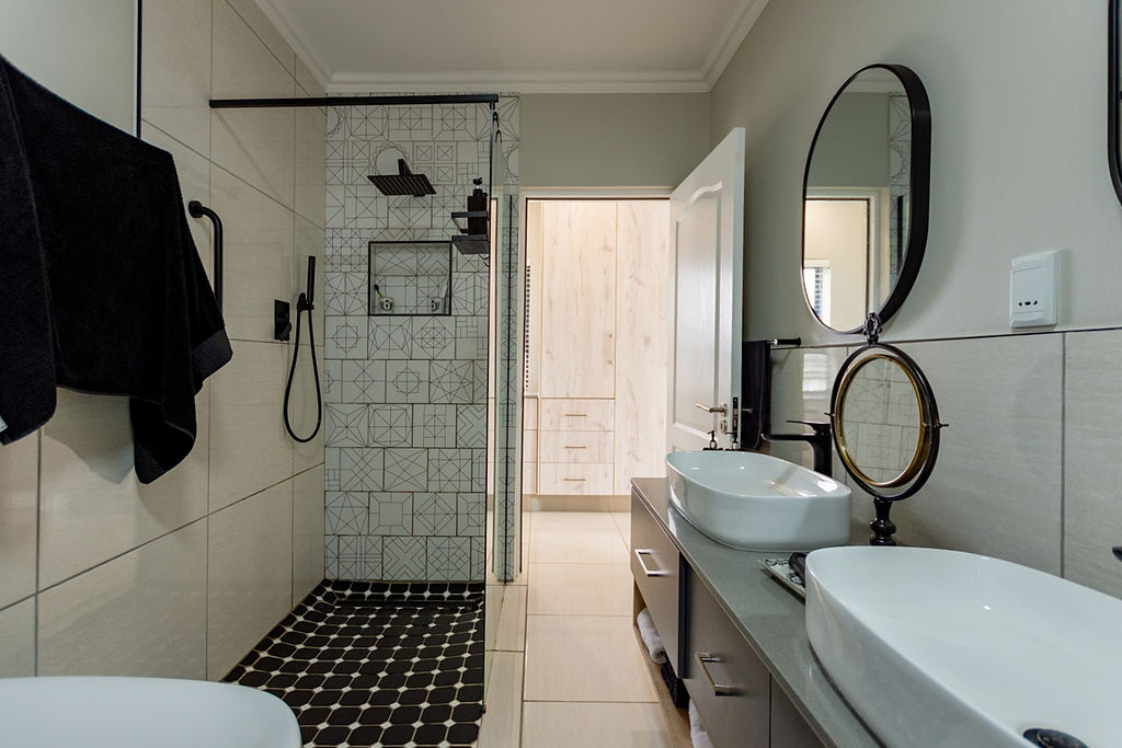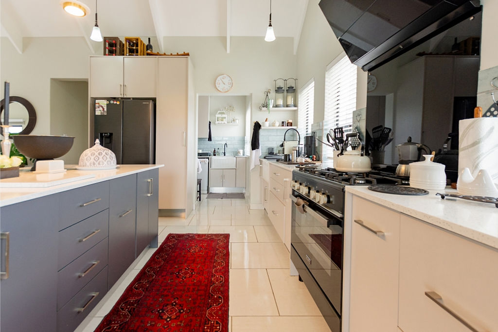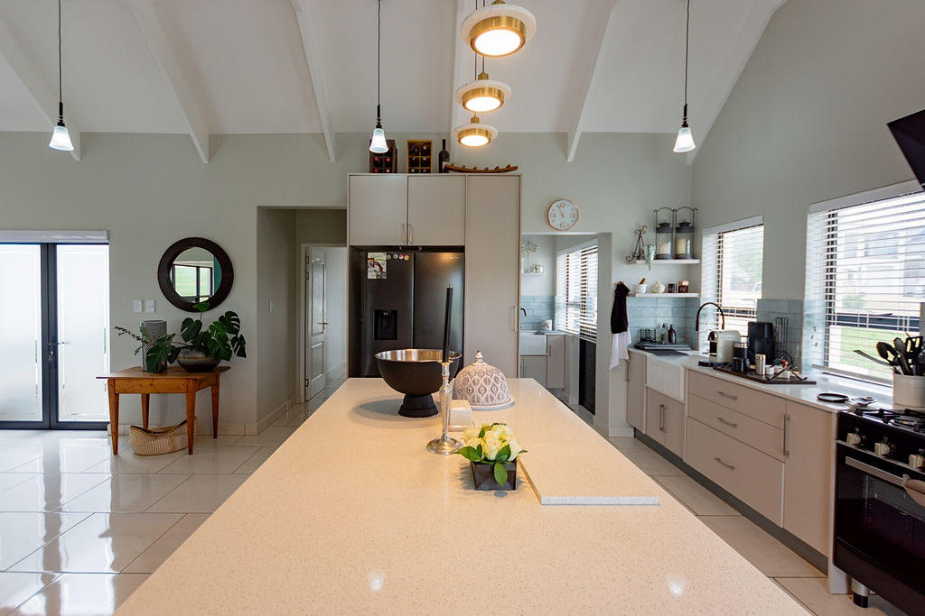 The gourmet kitchen comes with Caesarstone countertops, extra large gas and oven stove with hob. A separate scullery to keep the kitchen area tidy as well as separate laundry downstairs.