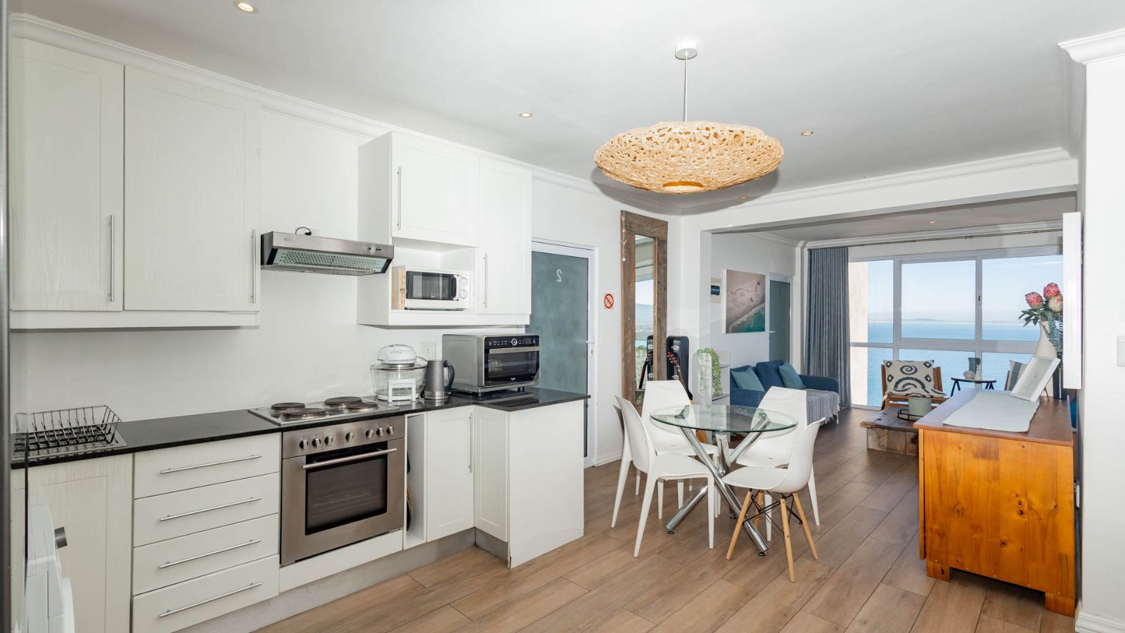 Experience coastal living at its finest with this stunning 2-bedroom, 2-bathroom property offering breathtaking sea views. Perfectly designed for comfort and relaxation, this home features an open-plan kitchen and living area that seamlessly flows onto a spacious balcony with a built-in braai, ideal for entertaining or simply enjoying the serene ocean breeze.