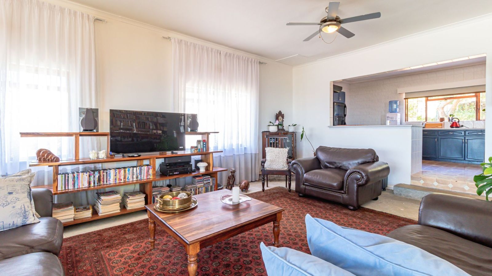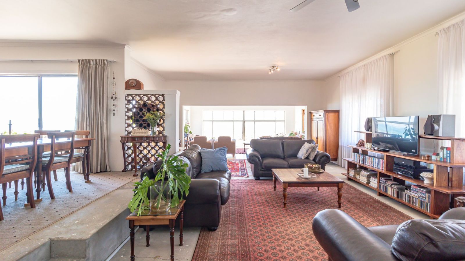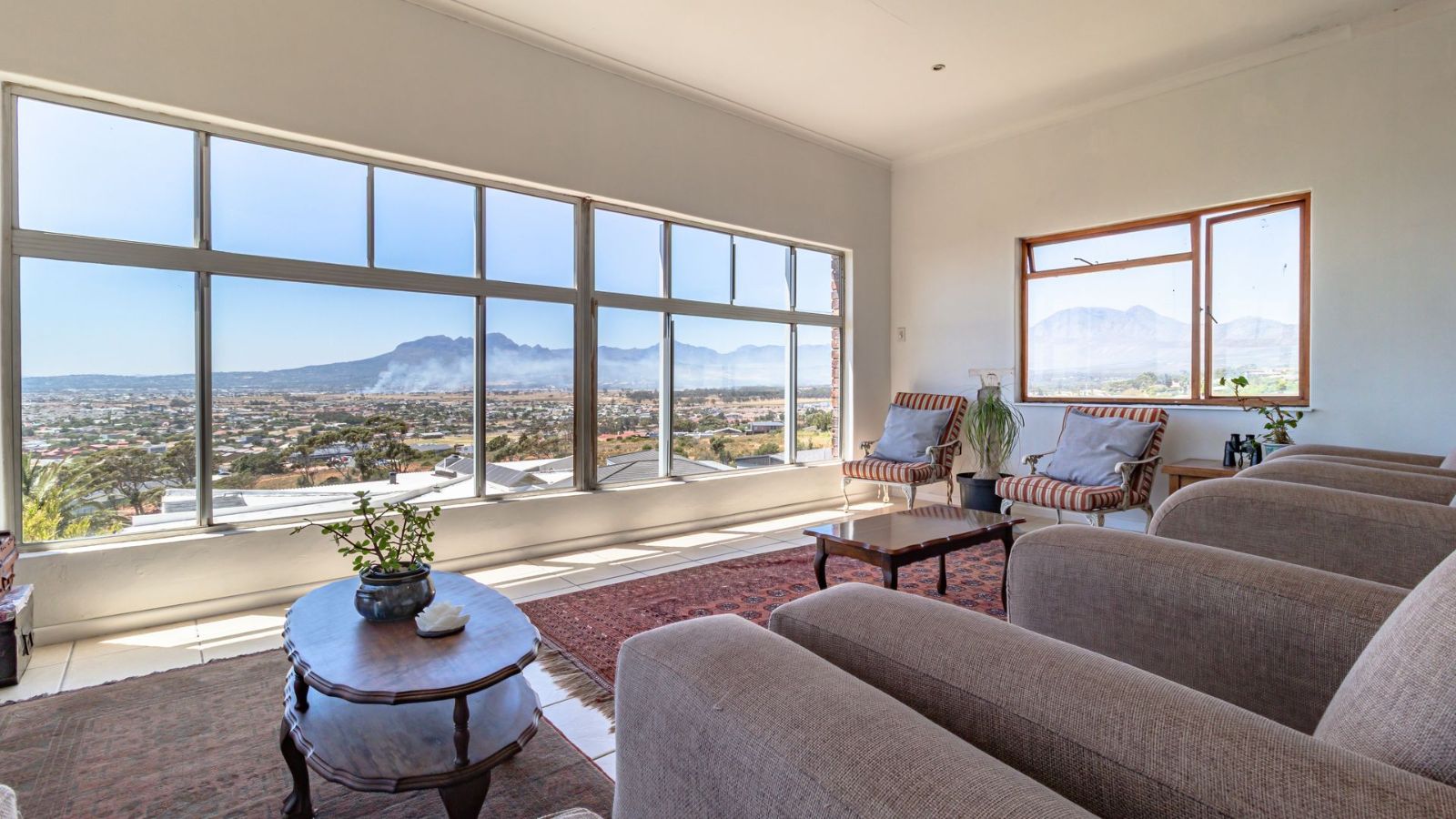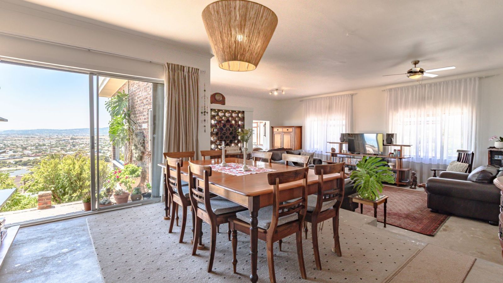 The heart of the home features an open-plan kitchen, complete with a separate scullery and laundry area, making daily living both effortless and organised. Flowing seamlessly from the kitchen is a spacious open-plan dining and living area, framed by large picture windows that showcase the stunning scenery and create a bright, airy environment perfect for relaxation or entertaining.