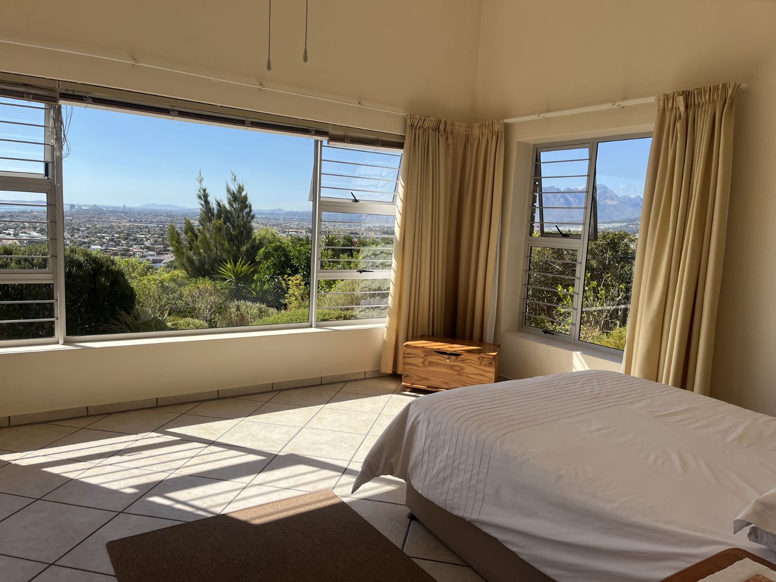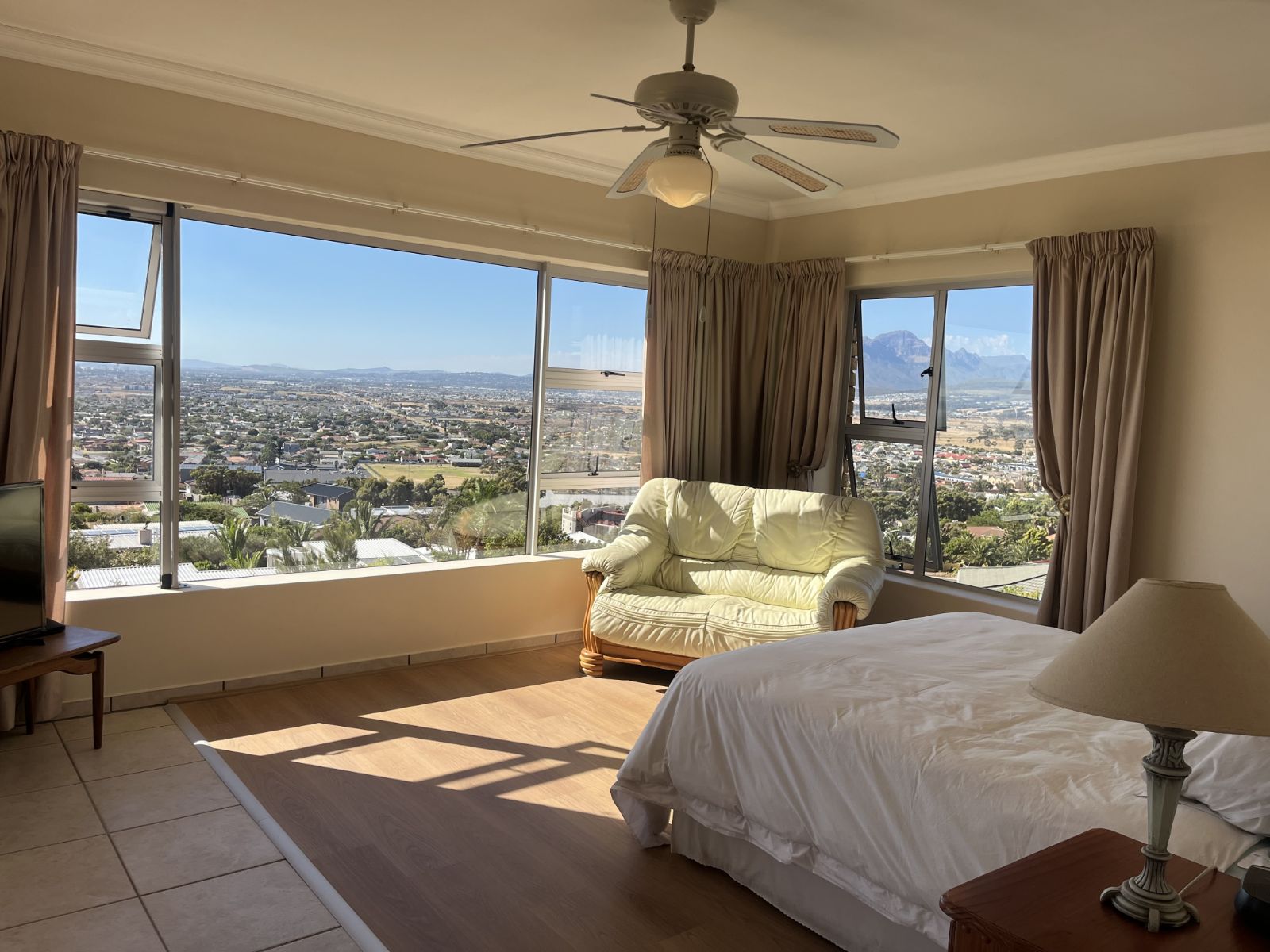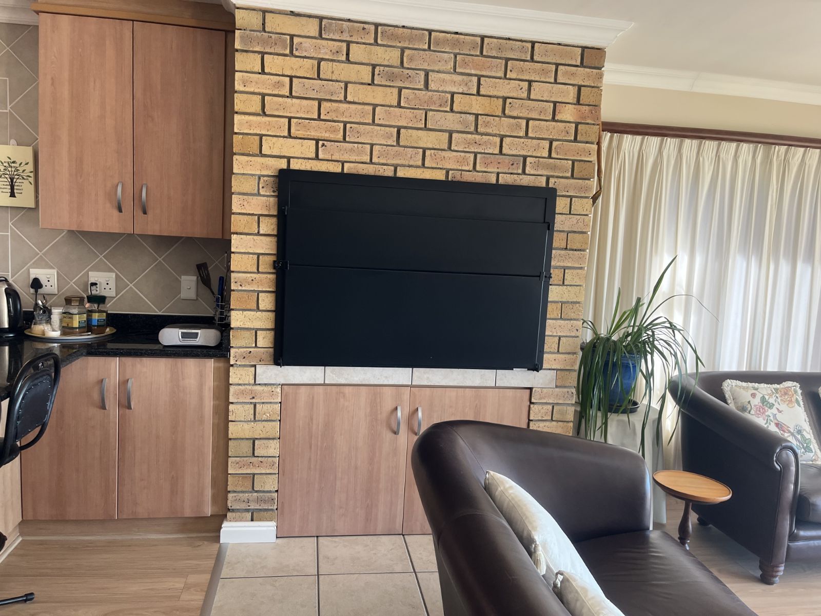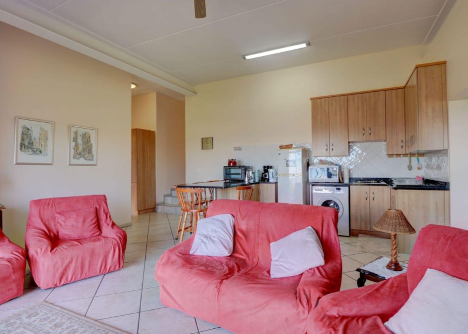 The showstopper is a large open plan living area designed around a spacious open-plan kitchen, dining room, and lounge with breath taking views off the patio and from large picture windows. A built-in in door braai—ideal for entertaining while staying connected and protected from the elements. Just off the entrance a spacious study that provides the perfect work-from-home environment. This level also hosts the master bedroom suite with a full en suite bathroom, and is truly a master sanctuary with ample cupboards and direct access to a balcony, that offers spectacular vistas of both ocean and mountains. A second bedroom also with a bathroom en suite caters superbly for your guests.