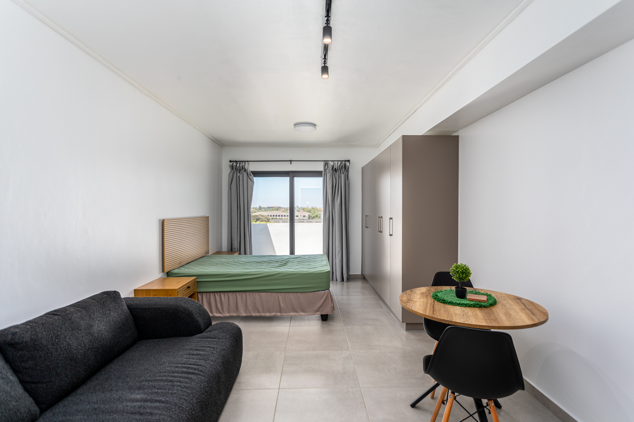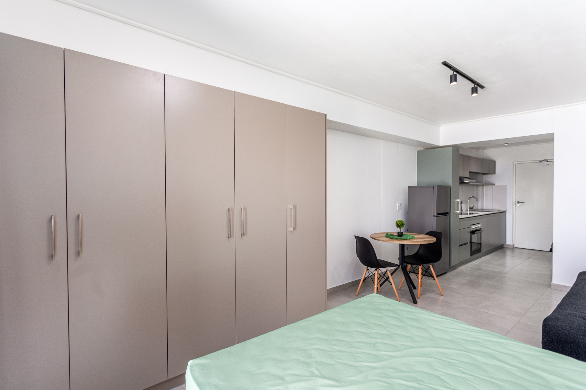 This fully furnished apartment spans 40m2, including both the living space and a private balcony. The open-plan layout seamlessly integrates the kitchen, lounge, and bedroom areas, with the living space extending onto a spacious balcony. The modern kitchen is fitted with an oven, ceramic hob, and fridge. Additional features include one contemporary bathroom, tiled flooring throughout, a secure basement parking bay, and a prepaid electricity meter for added convenience.