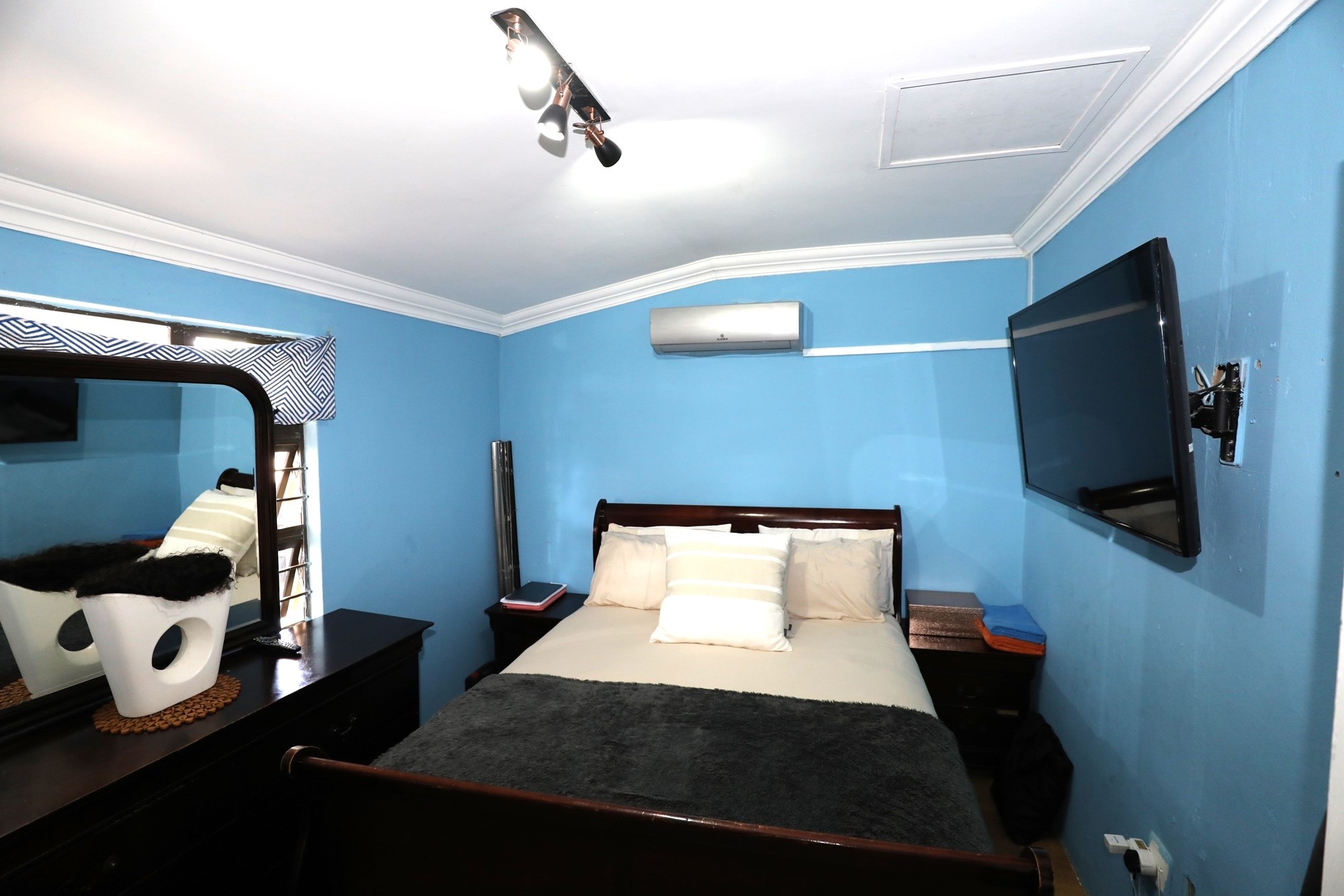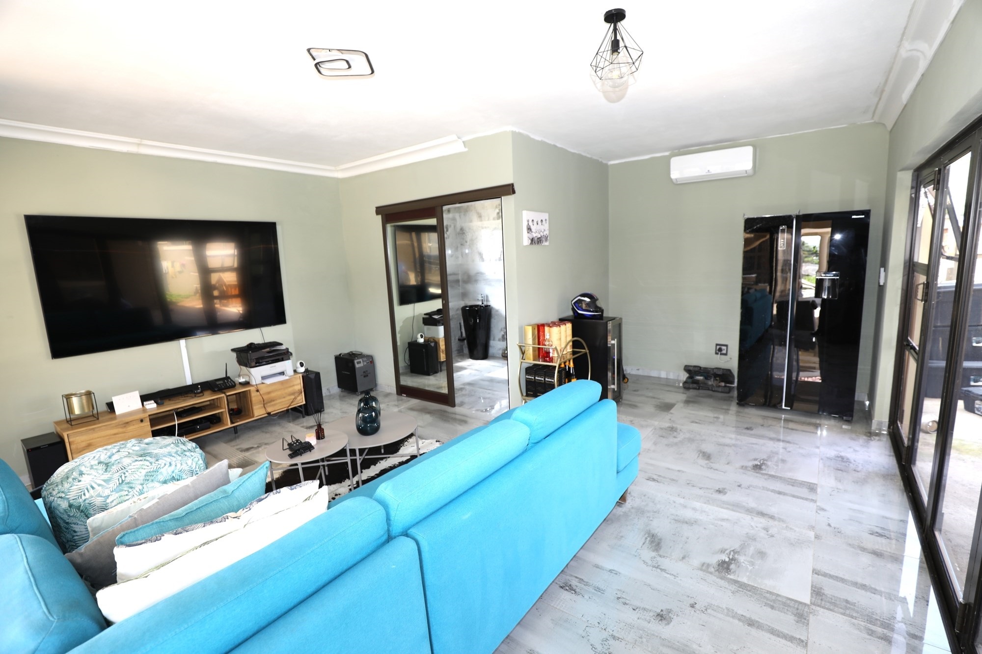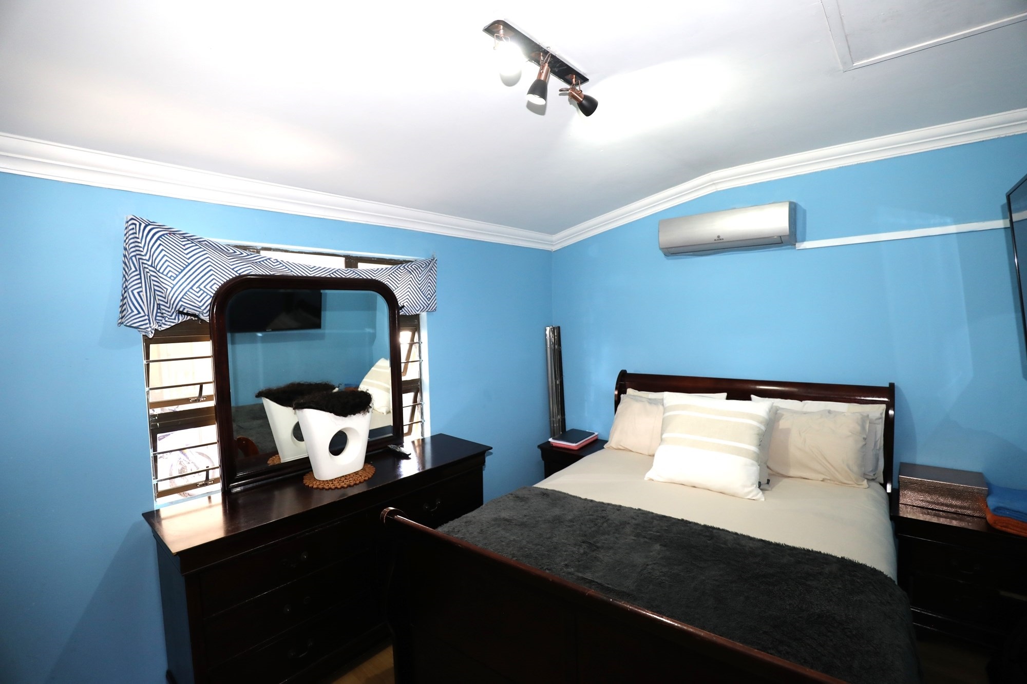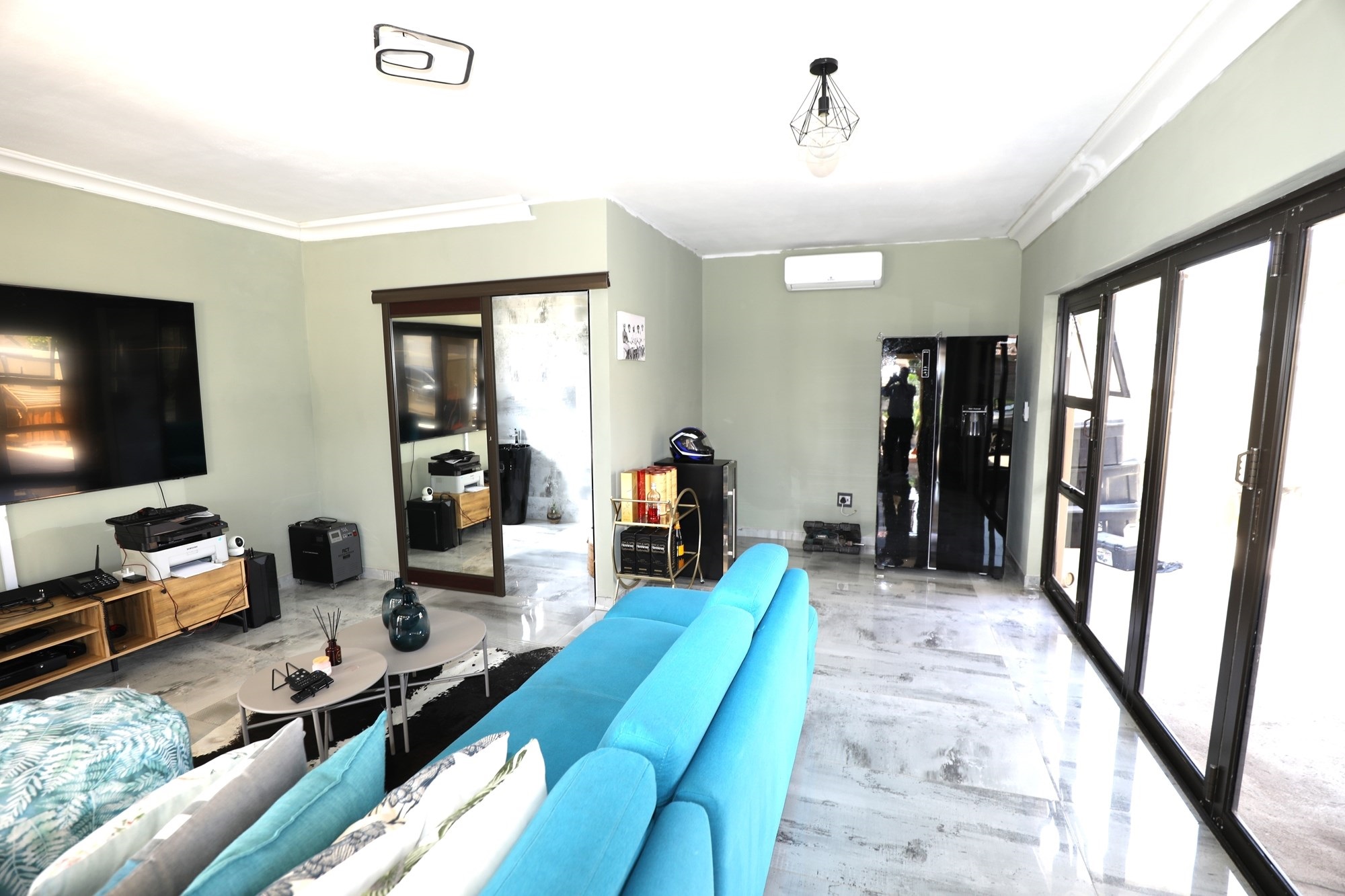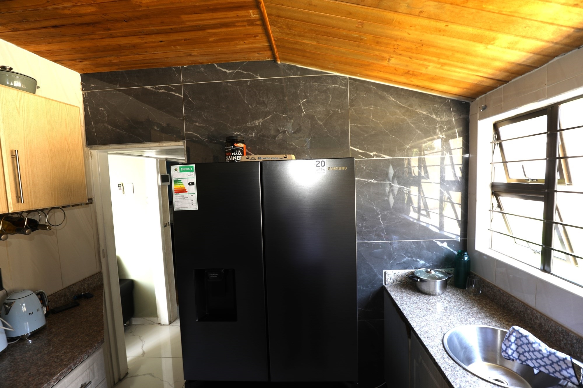 There are 2 houses in this compound, the first house has 2 bedrooms, 1 bathroom, lounge and a fully fitted kitchen with nice finishes. There are 2 aircons. One in the main bedroom and another one in the lounge. The lounge has cladding stone on the wall, which uplift the beauty of this home.