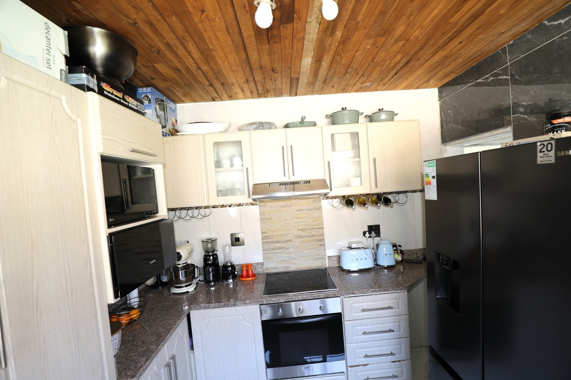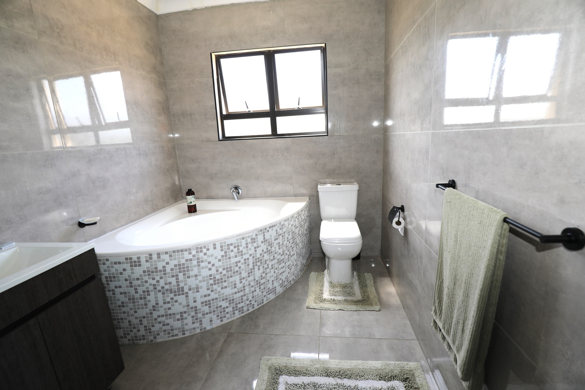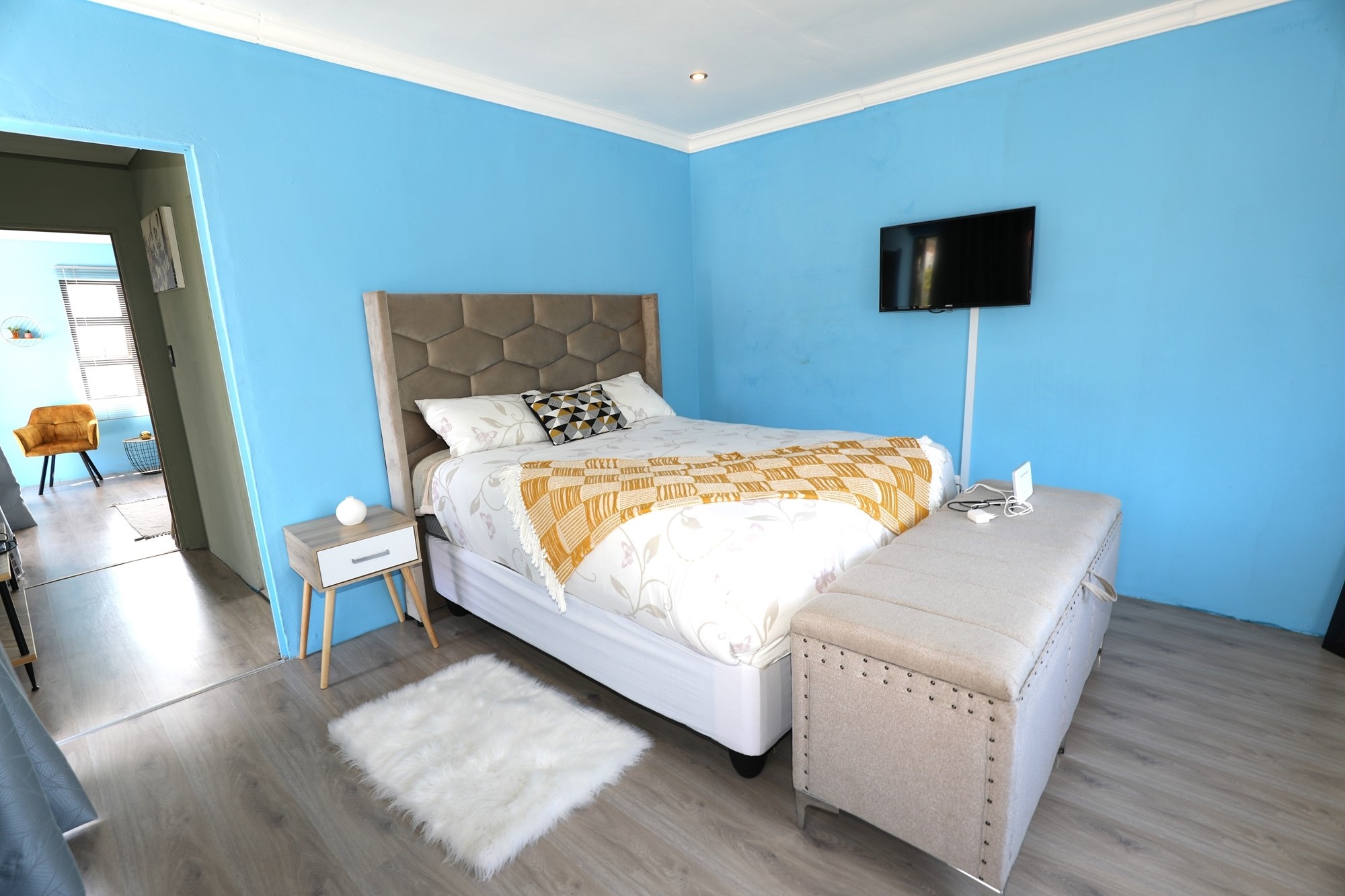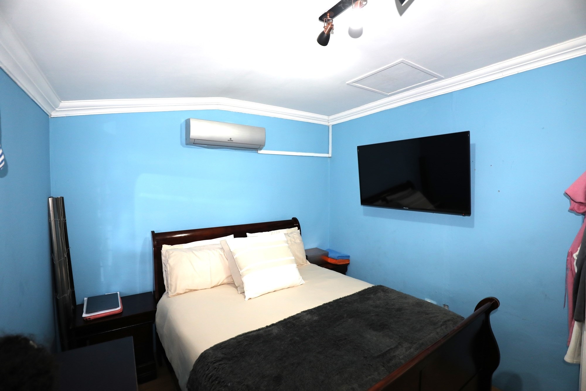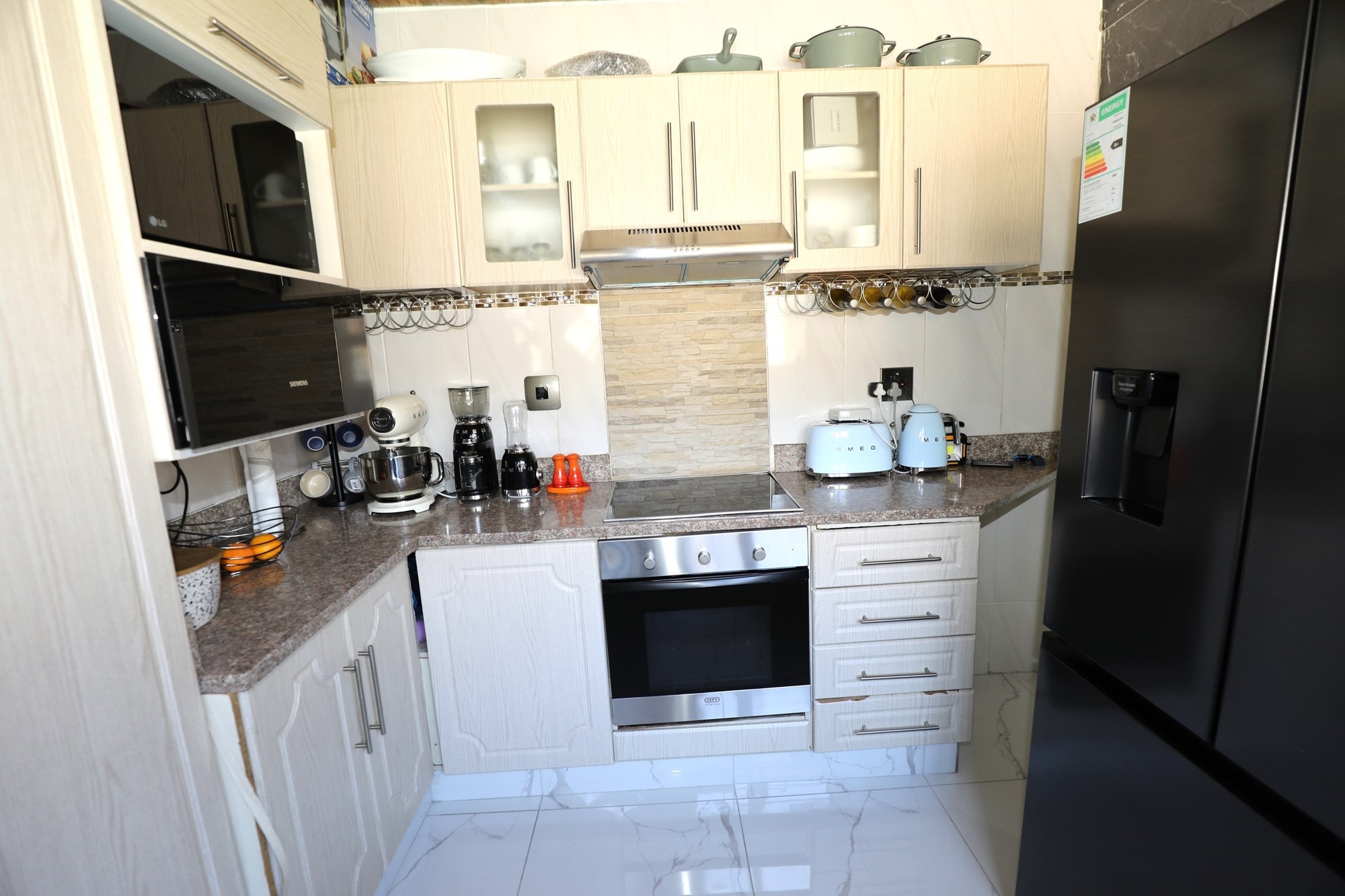 There are 2 houses in this compound, the first house has 2 bedrooms, 1 bathroom, lounge and a fully fitted kitchen with nice finishes. There are 2 aircons. One in the main bedroom and another one in the lounge. The lounge has cladding stone on the wall, which uplift the beauty of this home.