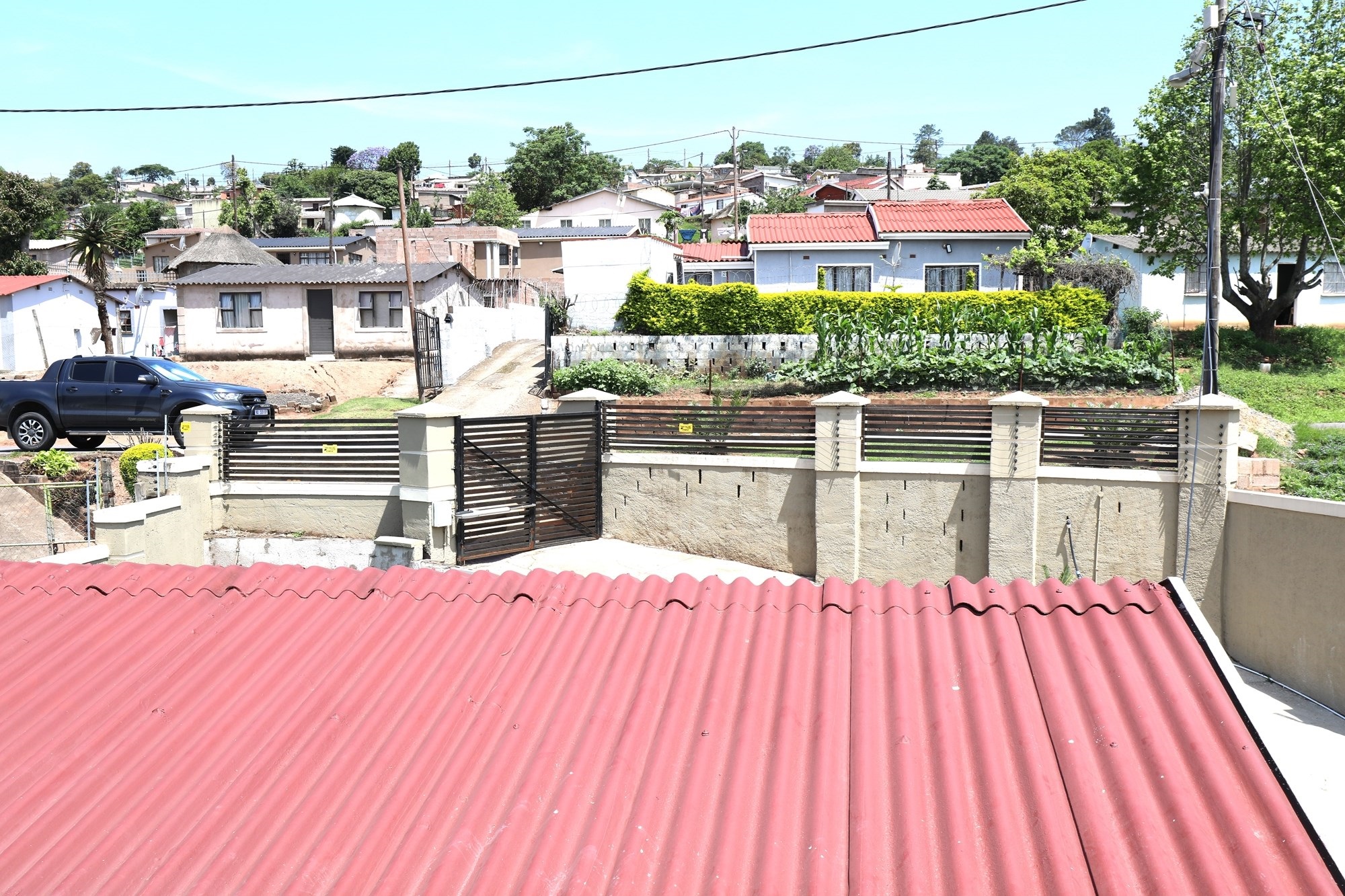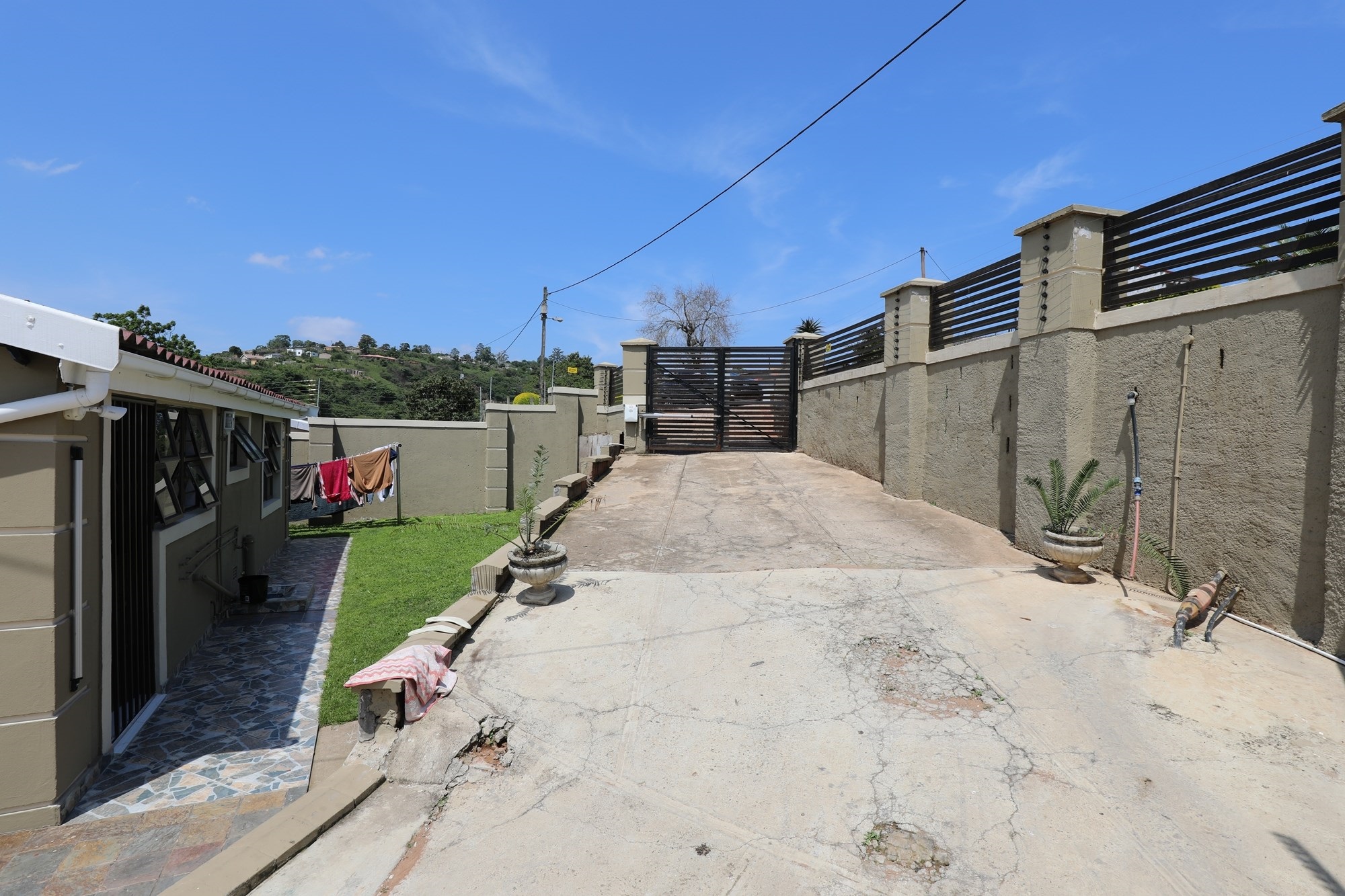 There is a separate office and a double carport. Outside, the house is paved and has an electric gate.
