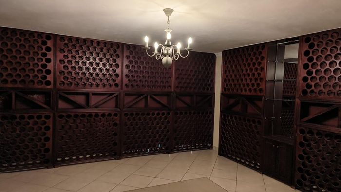 Entertainer's dream overlooking the golf course with sweeping green views, covered patio and built-in braai, wine cellar, four ensuite bedrooms and double garage with solar inverter.