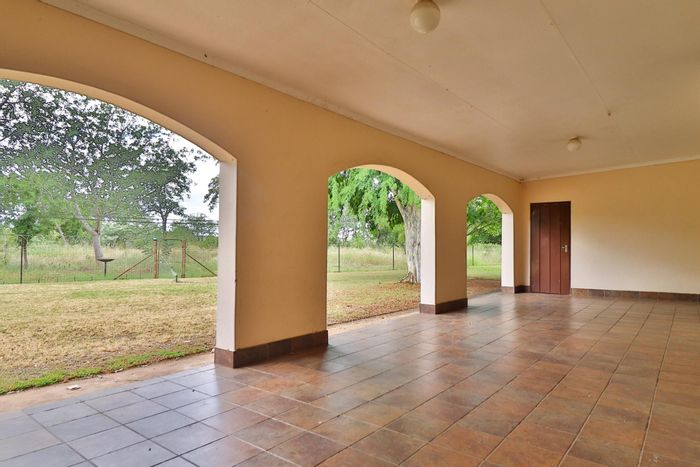Lowveld lifestyle with verandah, mature garden and outdoor entertainment area in Hectorspruit, halfway between Lebombo border and Nelspruit — three bedrooms, three baths and covered parking for four.