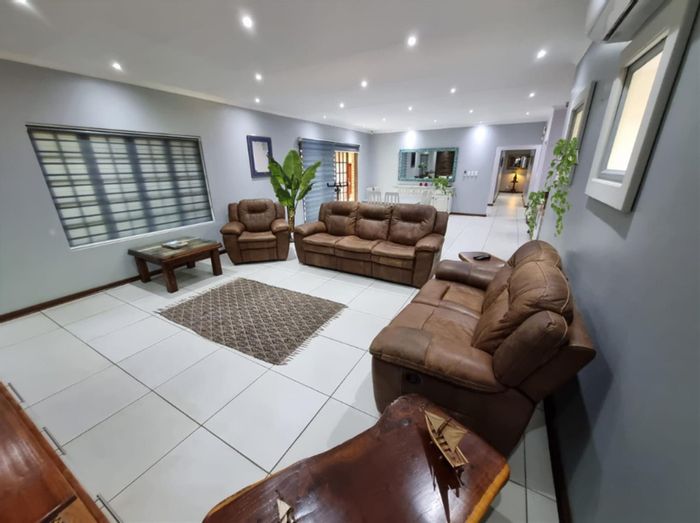 Relaxed family living in Komatipoort's prestigious enclave on a rare double stand — manicured gardens, covered entertainment area and pool, modern granite kitchen and private study; three bedrooms, three baths.