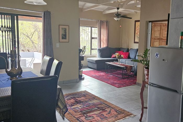 Embrace tranquil Marloth Park, Mpumalanga living with easy access to parks and shops; open-plan home features a gas kitchen, private swimming pool, three bedrooms, two bathrooms and covered parking.