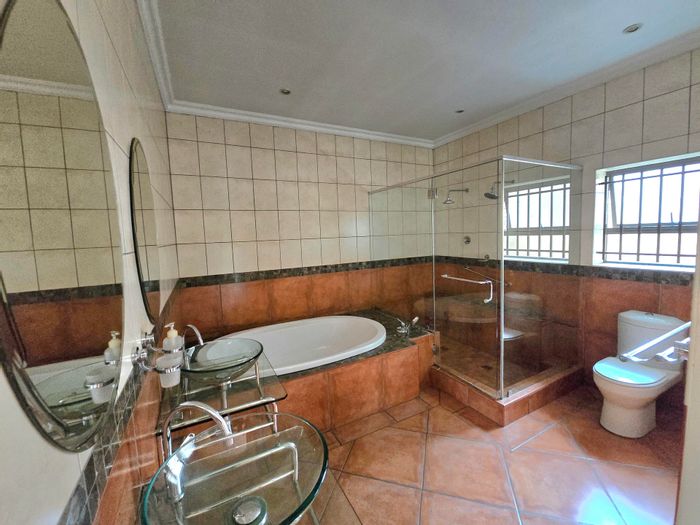 Clubville living on a sought-after street — light-filled interiors flowing to manicured gardens with pool and braai; gourmet granite kitchen, five bedrooms and six-car garaging.