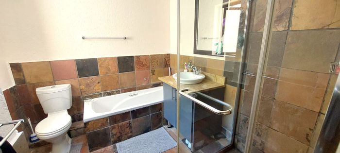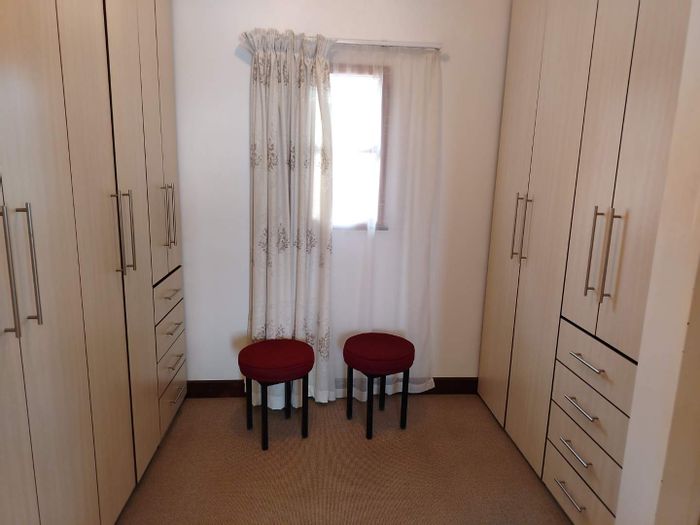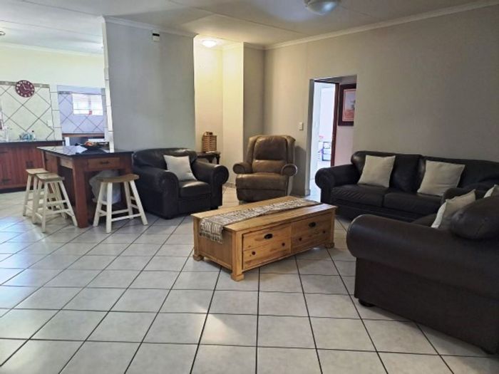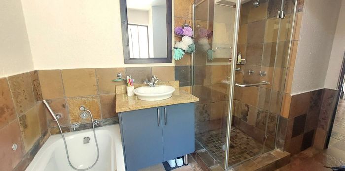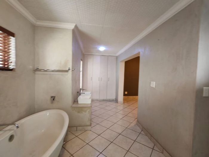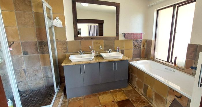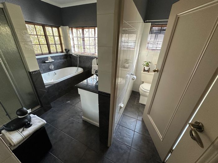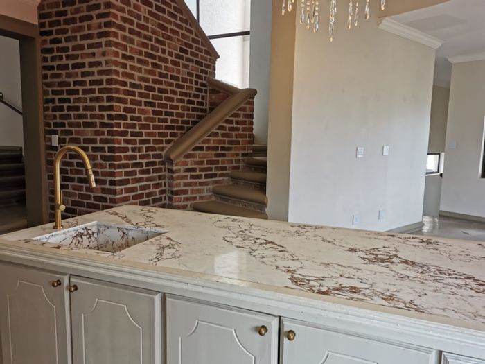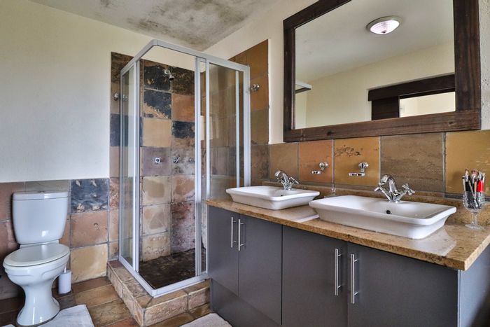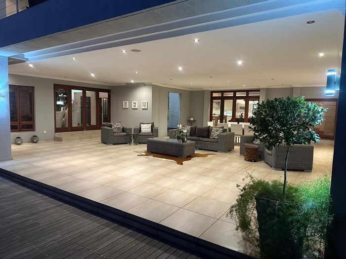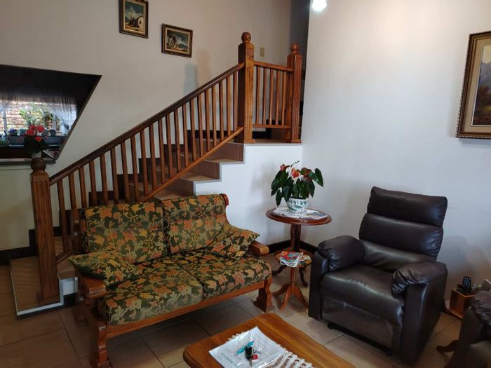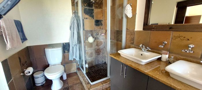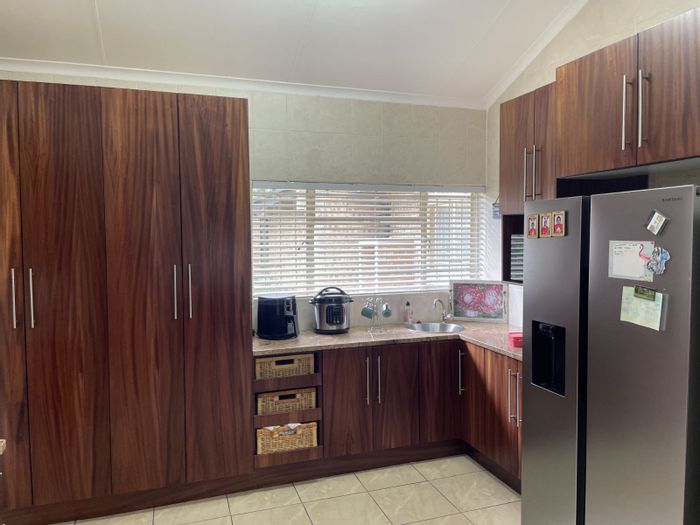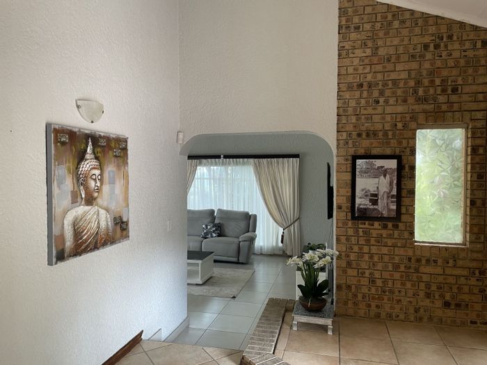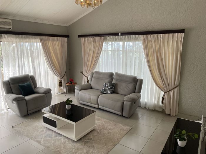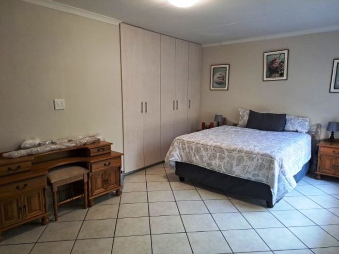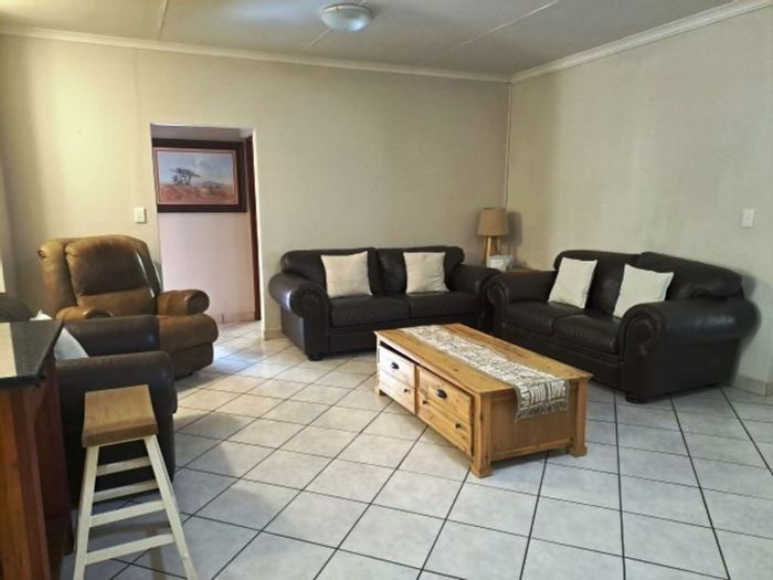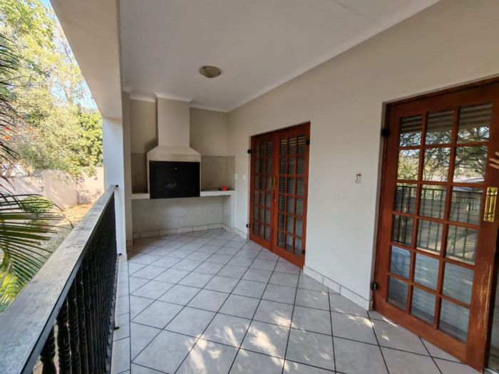 Entertainer's villa in Ext 11 offering panoramic views, open-plan living and a patio with built-in braai. Granite kitchen, high-ceiling master with stoep; three beds, 2.5 baths, double garage.