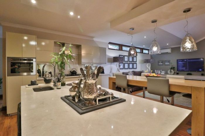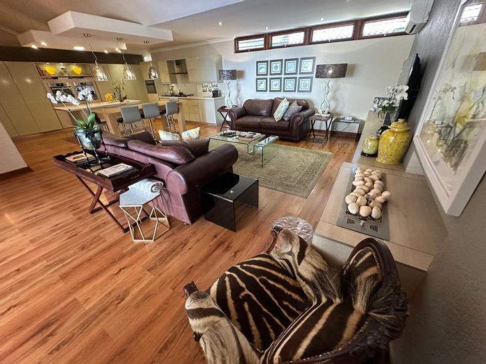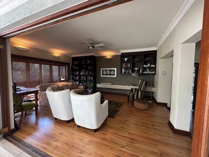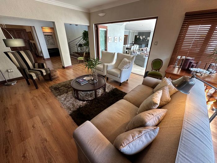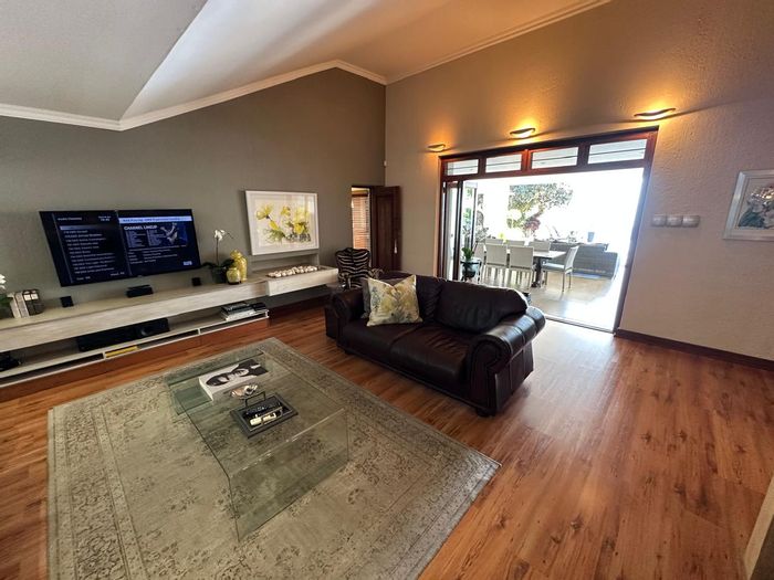 Entertain effortlessly with a sunlit patio and lapa overlooking a sparkling pool, multiple living areas and high-security on a generous 1,795m² family plot. Four bedrooms, two baths, three garages.