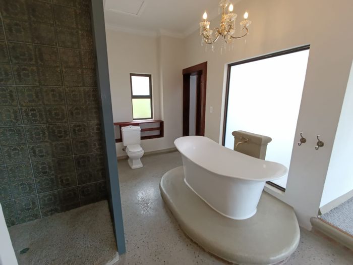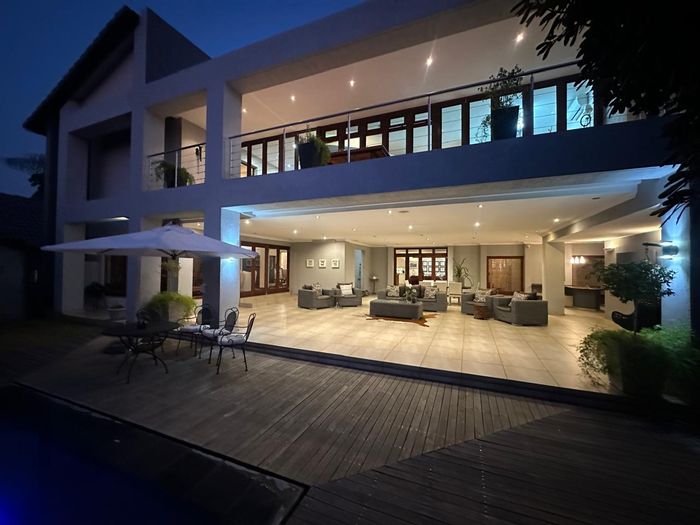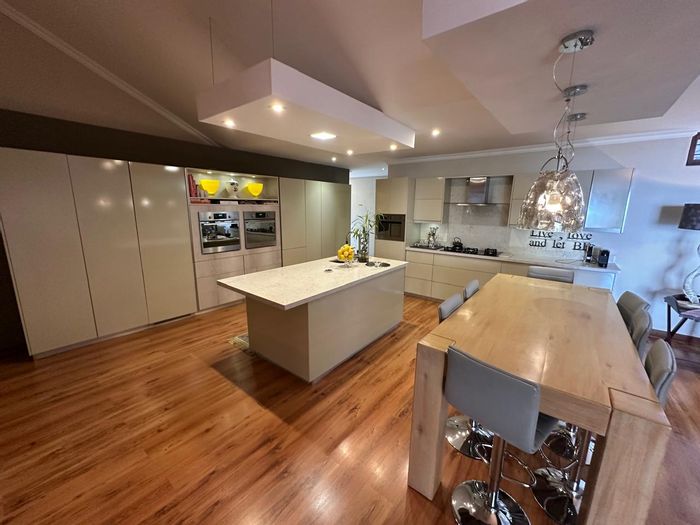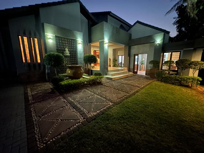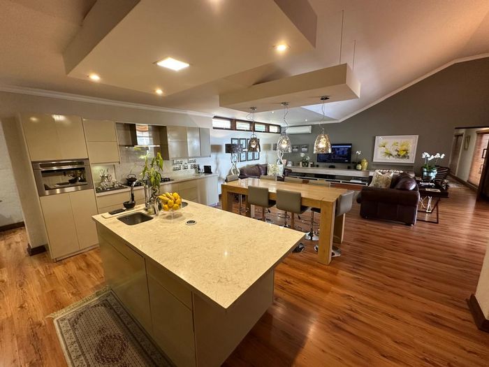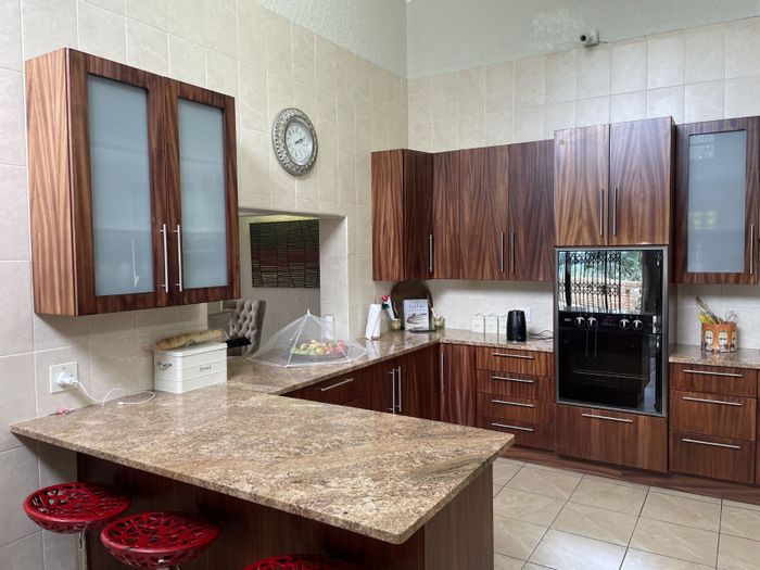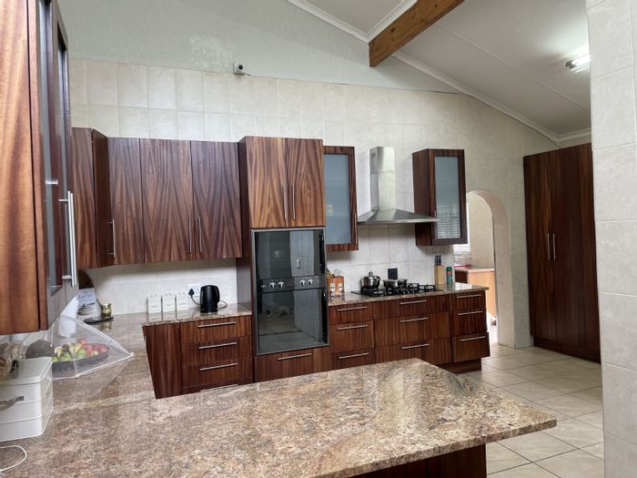 Newly built 5-bedroom home in secure Estate Ext 11, featuring open-plan living, pool, garages, and established garden.
