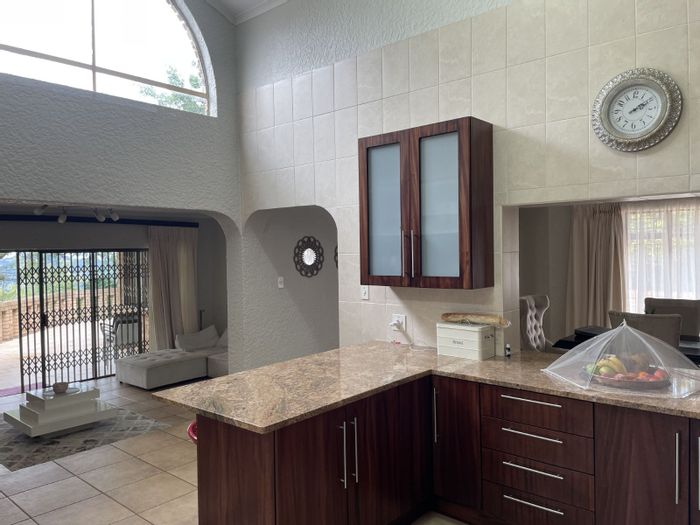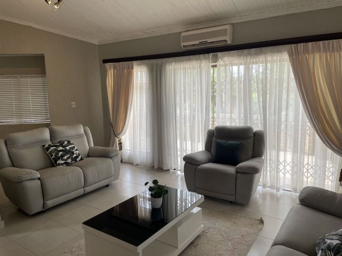 Relaxed Lowveld living in sought-after Cussonia Estate with mountain views and seamless indoor-outdoor flow; open-plan kitchen, covered patio and private garden. Three bedrooms, three bathrooms, double garage.