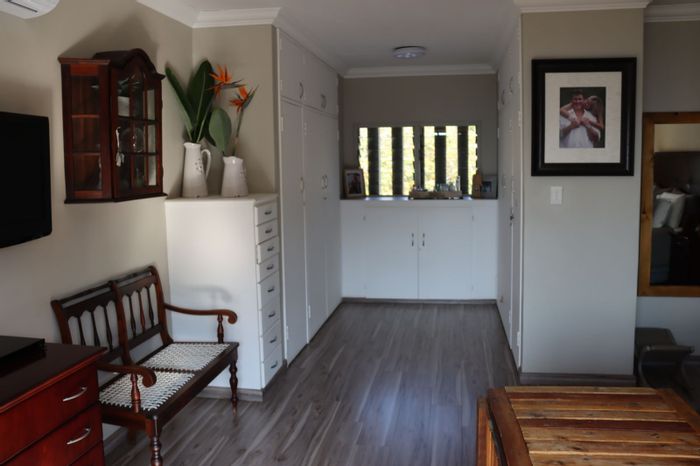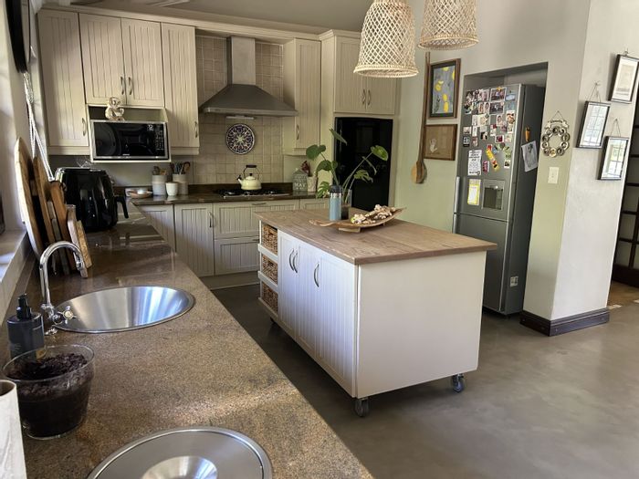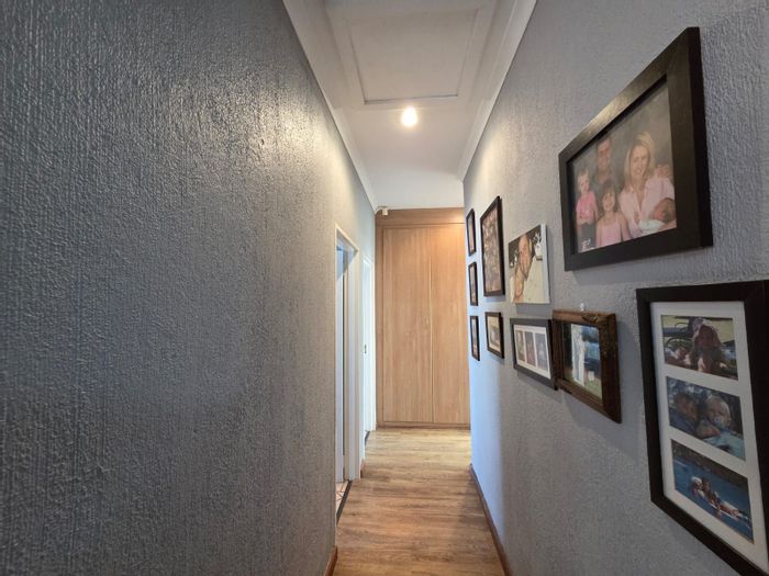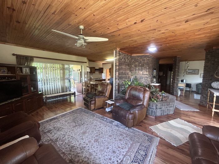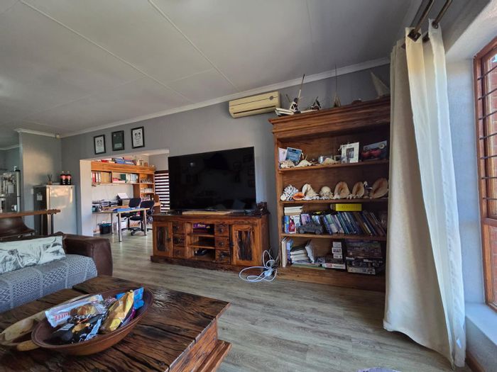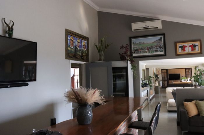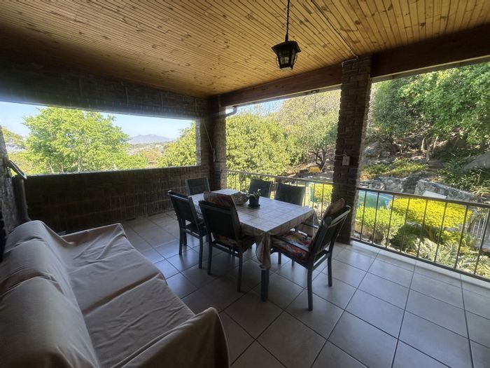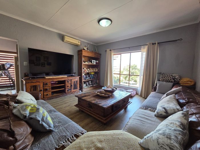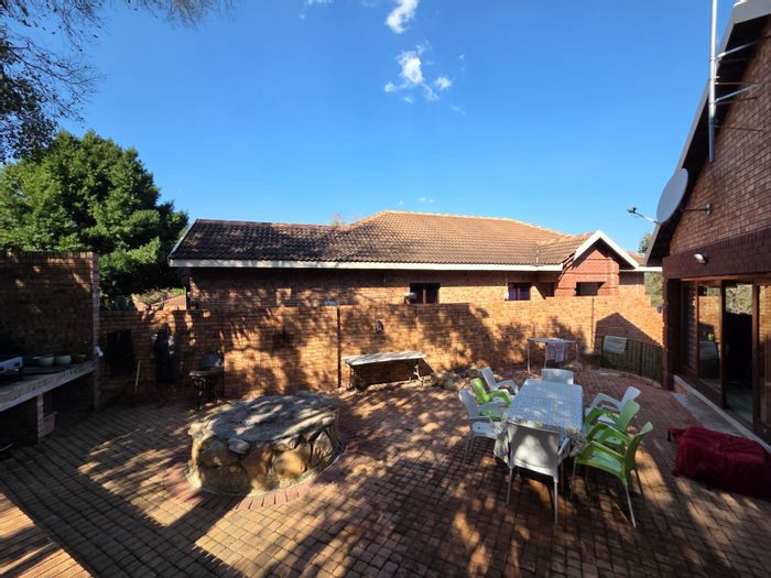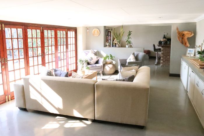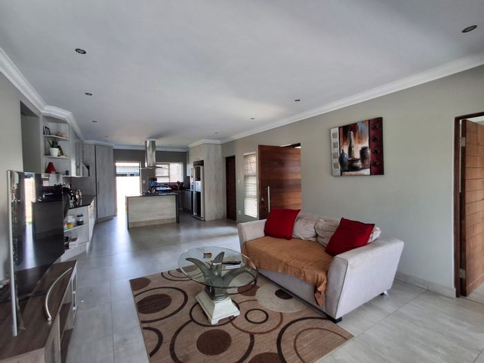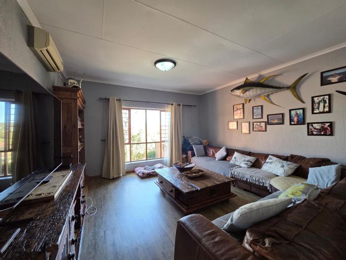 Entertainer's retreat in Tussenberge Estate, Steiltes, with open-plan living flowing to an enclosed patio and built-in braai, enjoying elevated views. Three bedrooms, two baths, double garage.