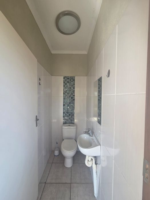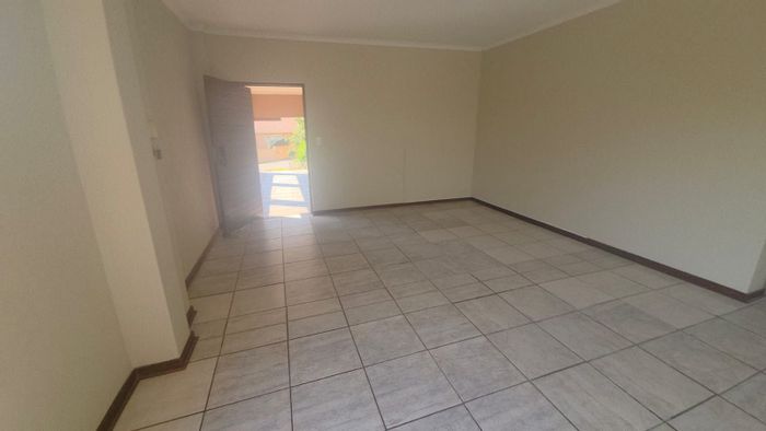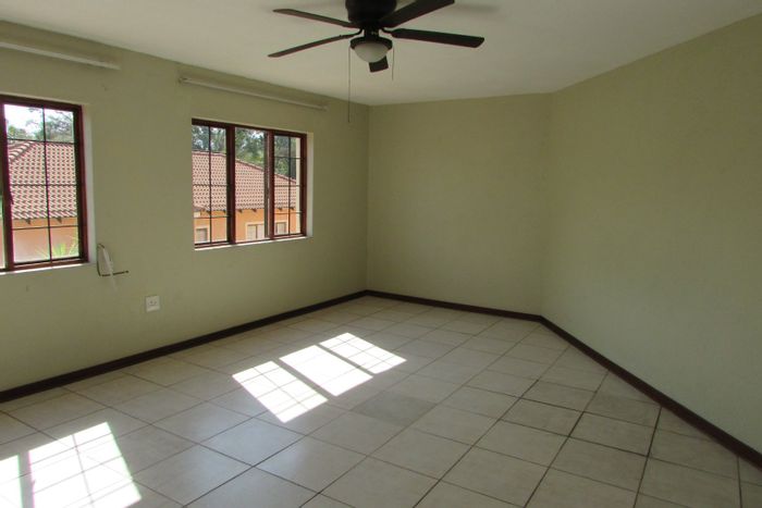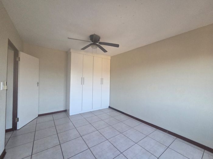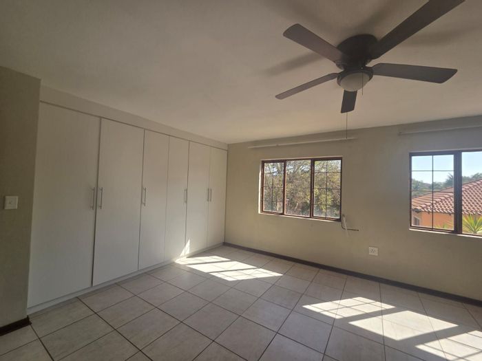 Light-filled double-storey townhouse in secure Stonehenge Ext 6, minutes from schools and shopping, featuring upstairs open-plan living, granite kitchen with island and handy scullery, covered patio.