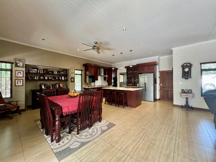 Estate living in the Lowveld mountains with sunrise views, walking trails and secure gated access. Open-plan kitchen flows to a large stoep with built‑in braai and landscaped garden.