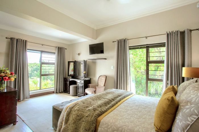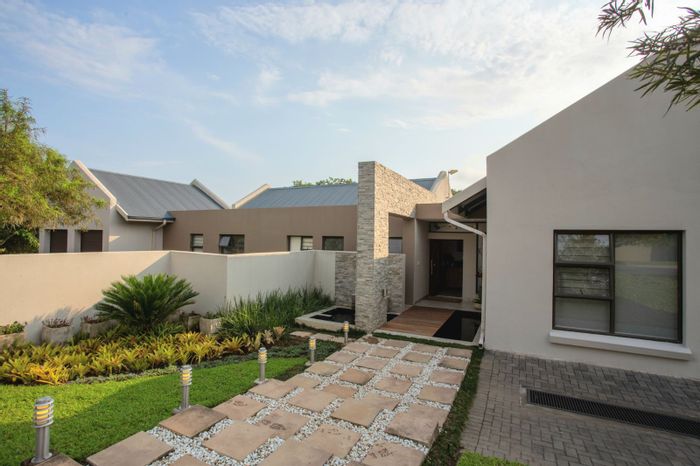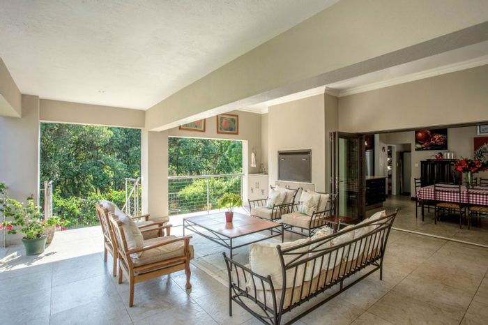 Luxurious 5-bedroom property in nature reserve with open-plan living, entertainment areas, outdoor amenities, privacy, and security.
