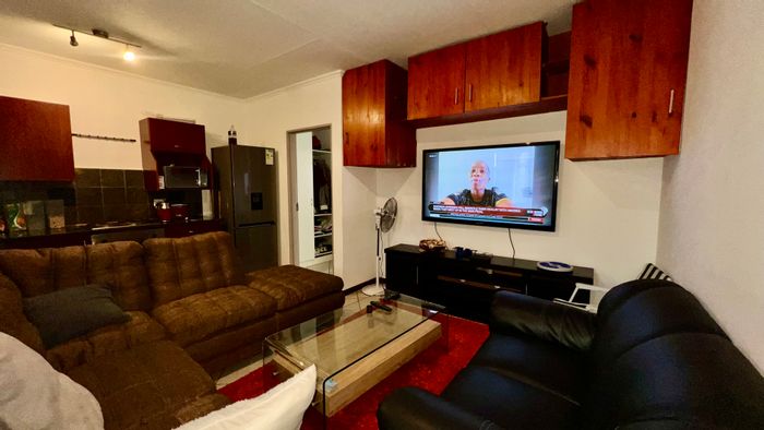 Easy lock-up-and-go living close to schools, shops and town amenities, set in a secure complex with gate and cameras; open-plan living, large kitchen, two beds, two baths, two parking.