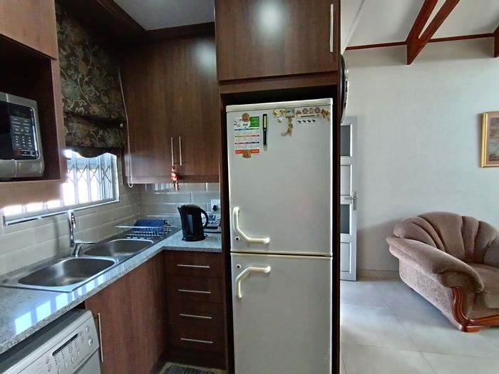 Lock-up-and-go living in an upmarket, secure complex — light open-plan interiors, modern kitchen with gas hob and granite, solar panels and single automated garage. Two beds, one bath.