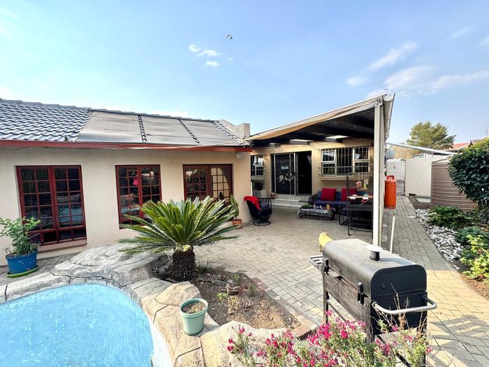 Corner stand in an established neighbourhood — versatile live-work compound with indoor braai and granite bar, heated pool, separate 3-bed flatlet; solar backup and water tanks. 6 beds, 4 baths.