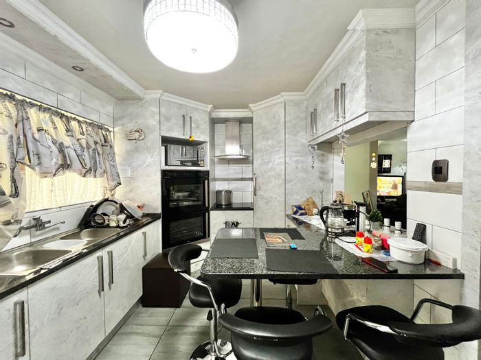 Energy-efficient family home in quiet Secunda suburb, featuring full solar system, sleek PVC ceilings with integrated downlights and granite kitchen; patio boma for entertaining. 3 beds, 2 baths, double garage.