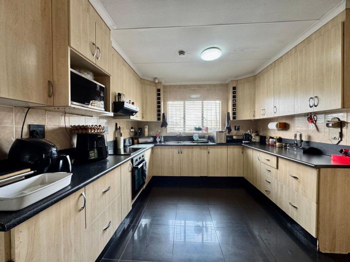Perfect for relaxed family living in a quiet neighbourhood with easy access to amenities, this property features an indoor heated pool and lapa, three-bedroom main, two-bed flat, seven carports.